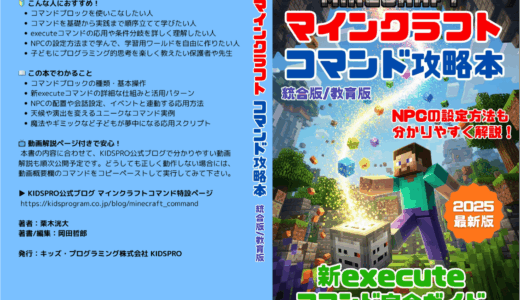 1. 著書「マインクラフト コマンド完全攻略技術書(統合版/教育版マイクラ対応)」 2. 著書「小学6年生までのプログラミング授業が1冊でしっかり分かる本」 3. 著書「スクラッチ3.0でゲームを作ろう! 小学1年生から … 続きを読む KIDSPRO出版の書籍&DVD