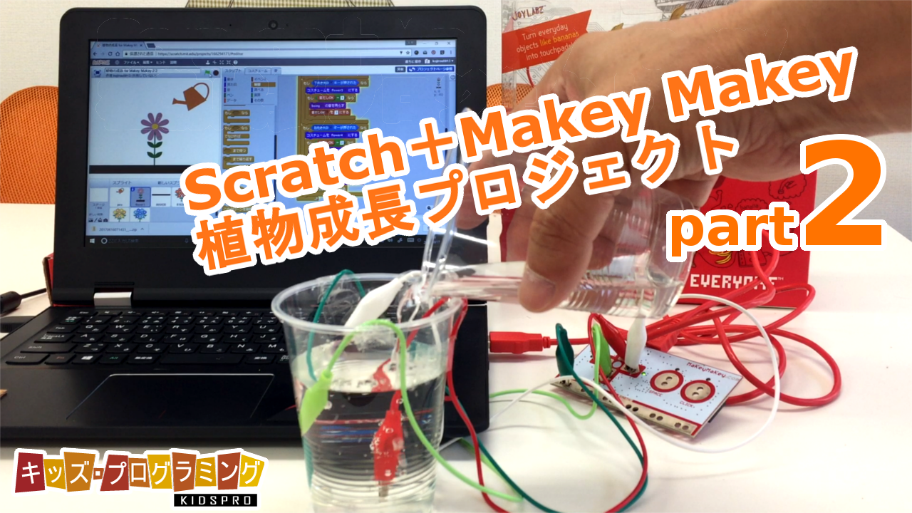 ホームMakey Makey Scratch+Makey Makey連動「植物成長プログラム」動画説明-2/2 2017年6月20日2019年10月11日 SHARE ポスト シェア はてブ LINE KIDSPRO パソコンの矢印キーなどを「野菜」「果物」「粘土」など電気を通す物に変える事が出来るMakey Makeyを使い、コップに水をそそぐと花の芽が成長し、つぼみになり、花が咲くScratch(スクラッチ)プロジェクトを作りました。 2/2回目の動画説明では、変数を使って矢印キーを押すと一度だけ音が出るスクリプト、Makey Makeyの接続方法に関する説明します。 KIDSPRO Scratch+Makey Makey連動「植物成長プログラム」説明動画