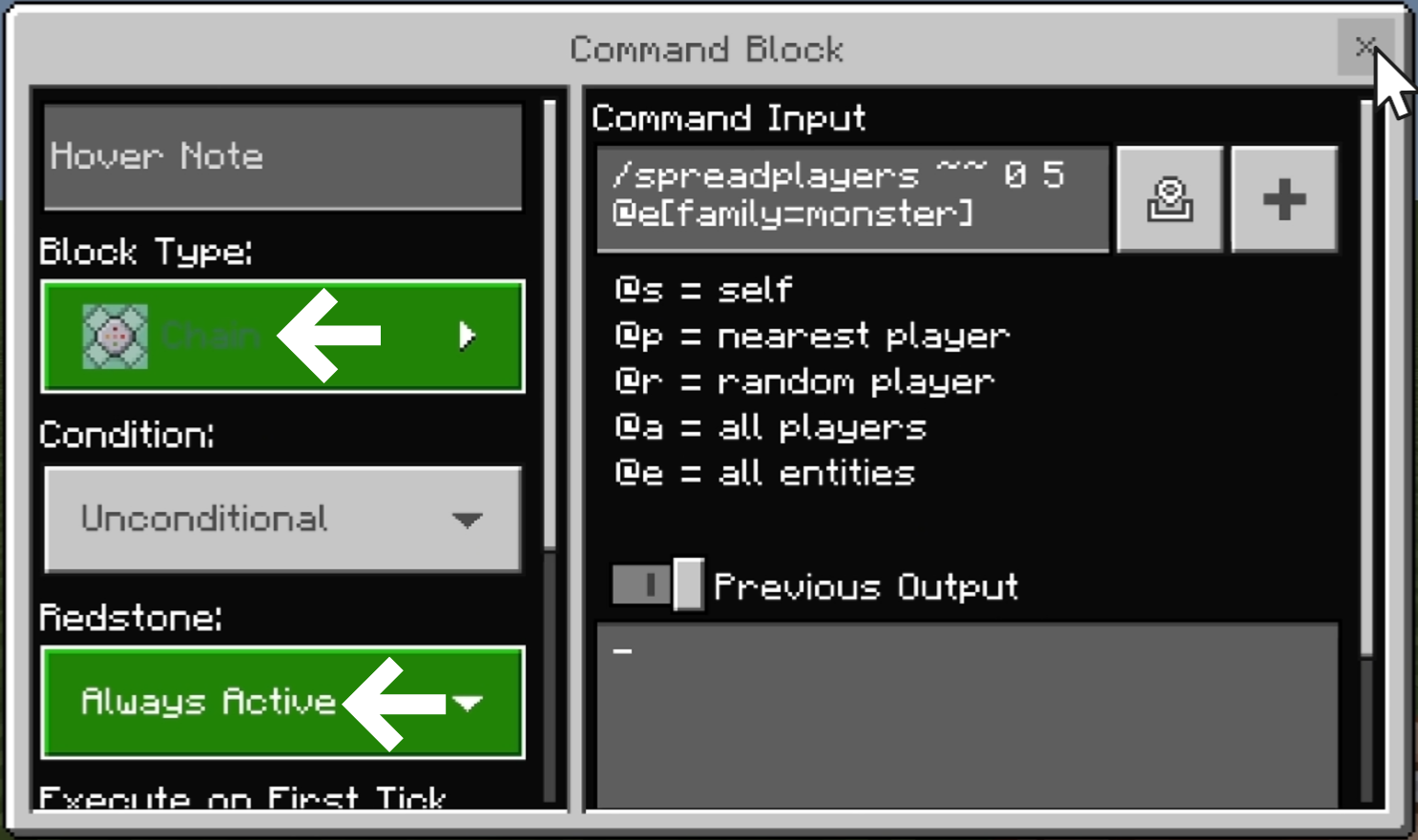Block Type: Chain / Redstone: Always Active