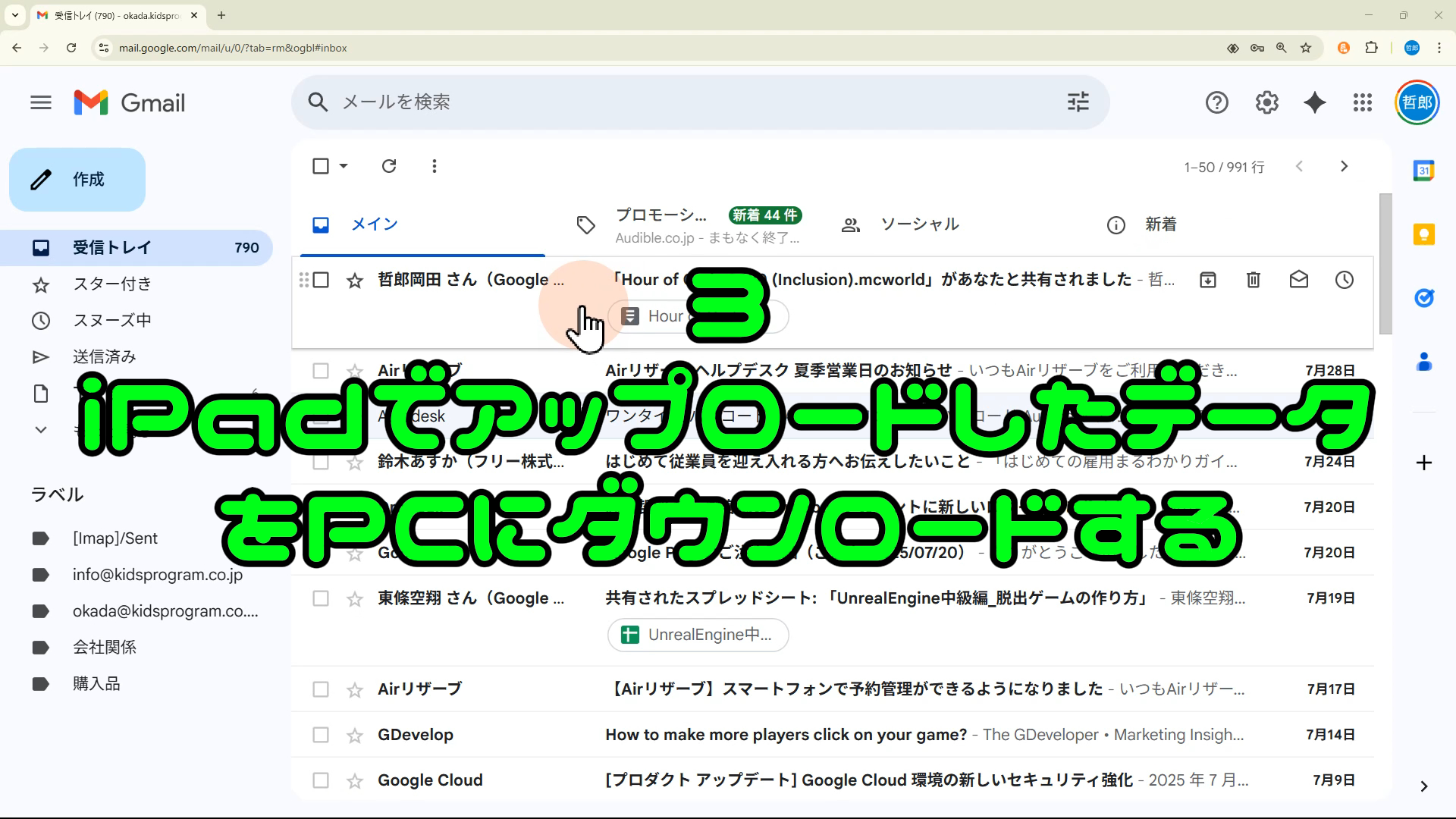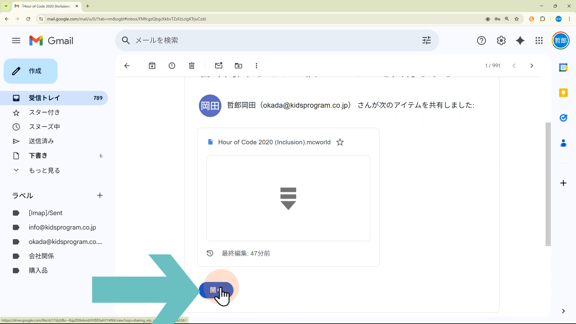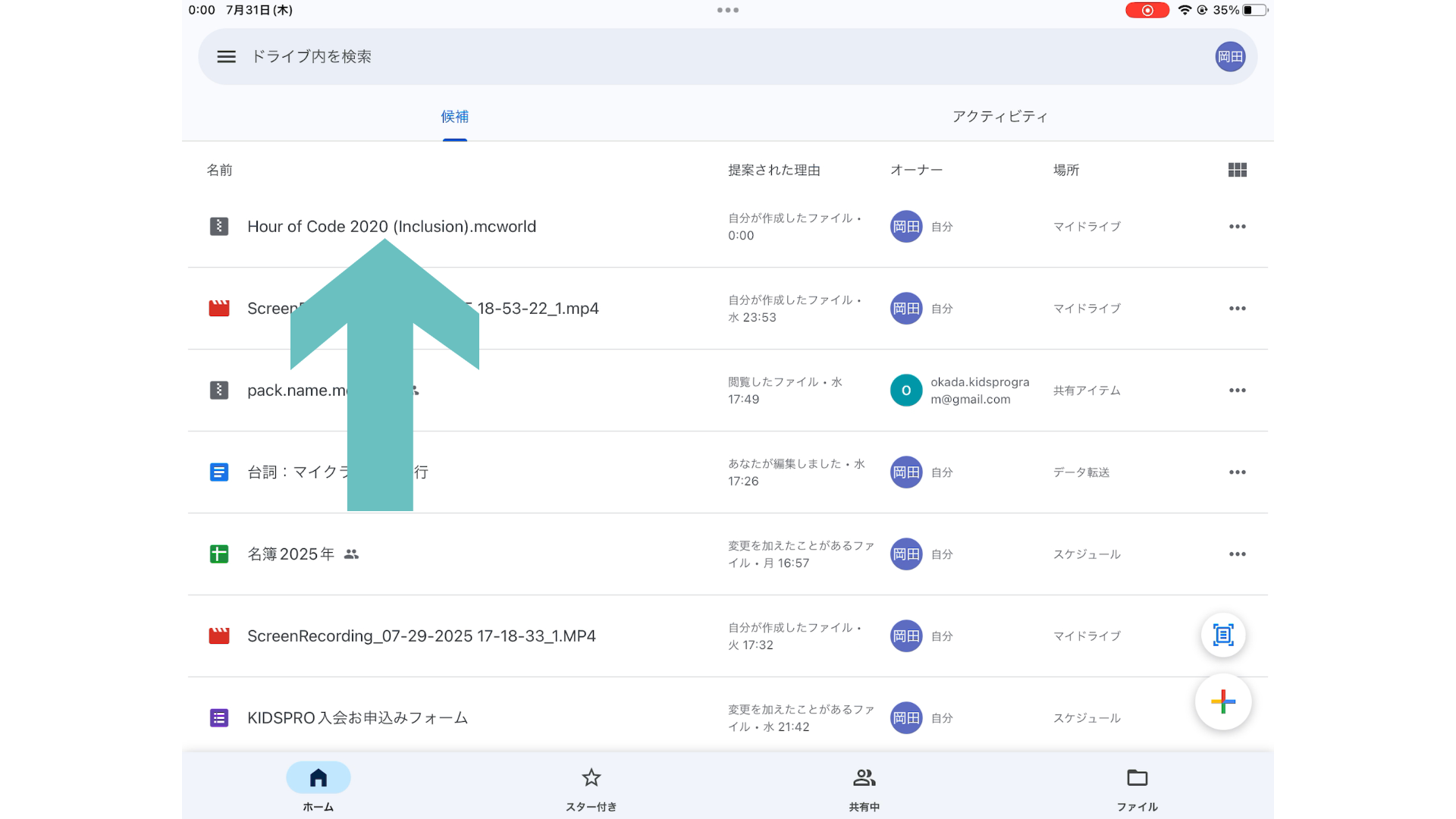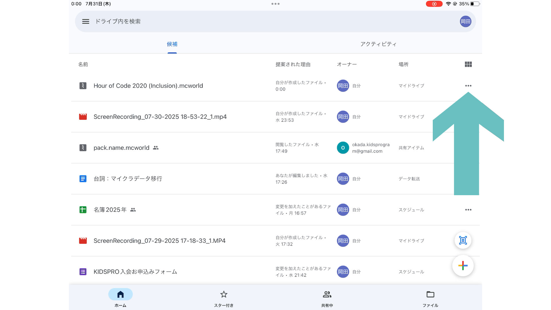 ※自分自身に転送する場合には、この共有の処理は必要ありません。PC側でGoogleドライブを開いて、対象のワールドデータをPCにダウンロードして下さい。