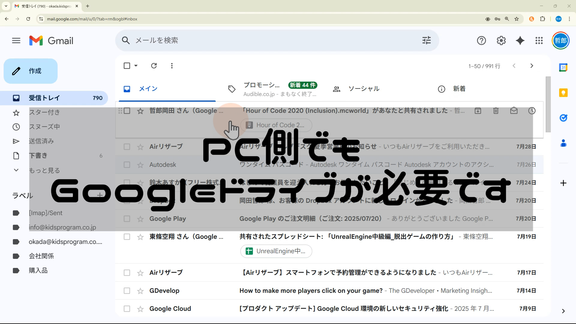 ※Googleドライブ側の保存先は、自分の好きな場所を選んで下さい。ここでは、マイドライブの直下に保存します。