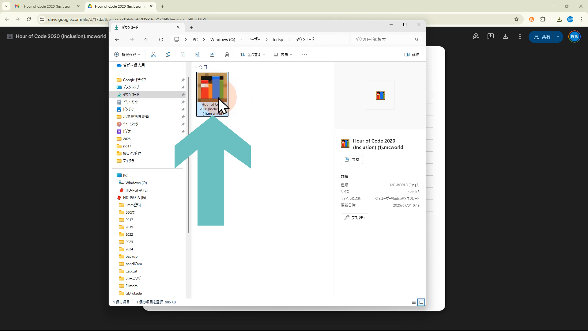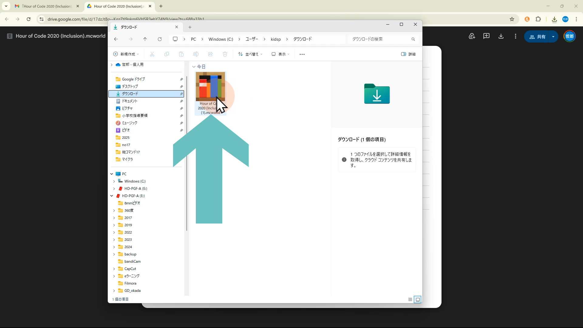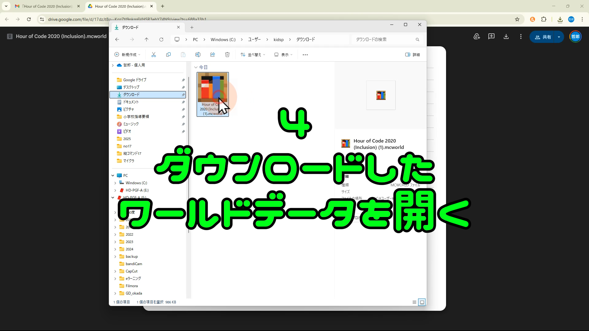 ※Windowsの設定を変えていなければ、ダウンロードしたファイルは「ダウンロード」フォルダに保存されます。