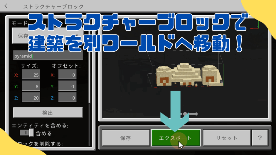 【マイクラ統合版/教育版】ストラクチャーブロックで建造物を別ワールドへ移植(エクスポート/インポート手順)