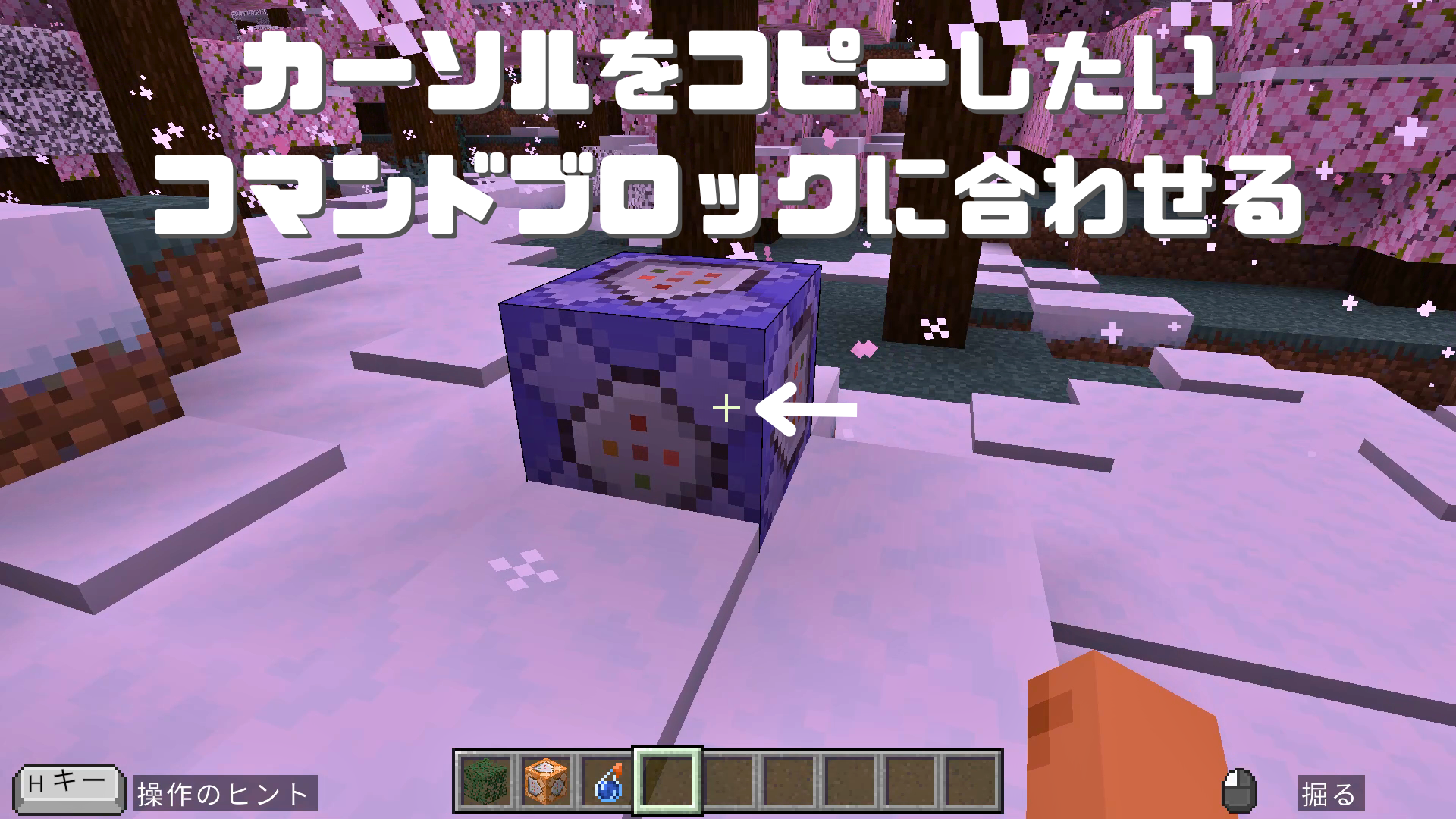 ①コピーしたいコマンドブロックにカーソルを(+)を合わせる