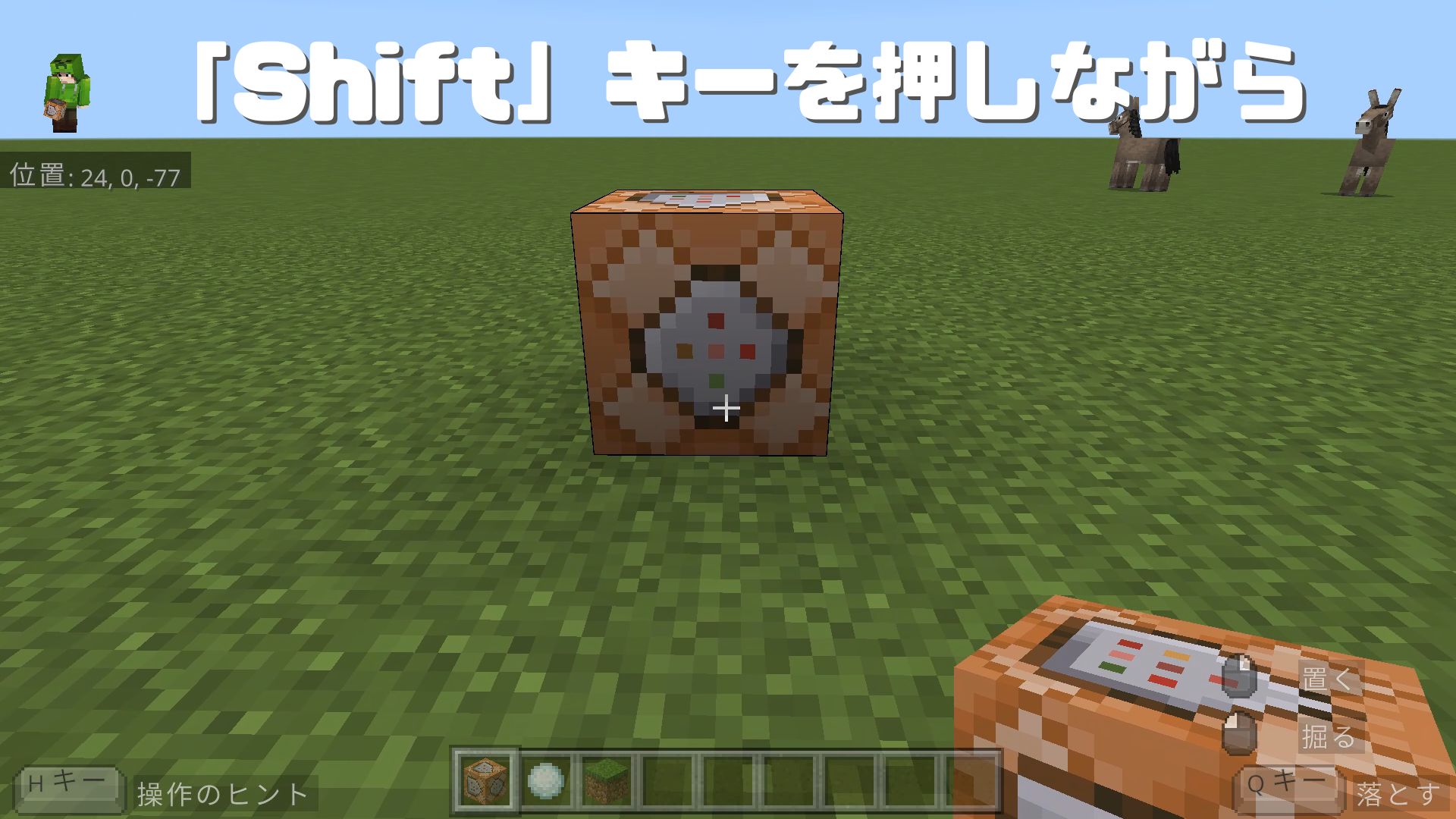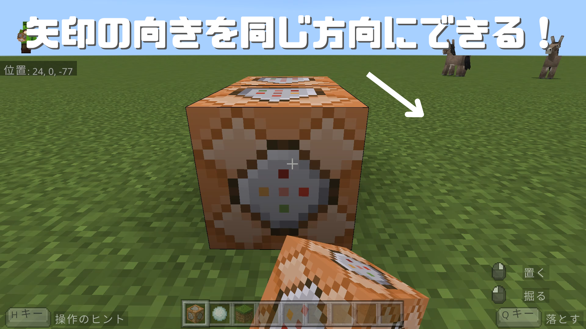 ②コマンドブロックを置くと同じ向き(むき)に設置(せっち)できます!