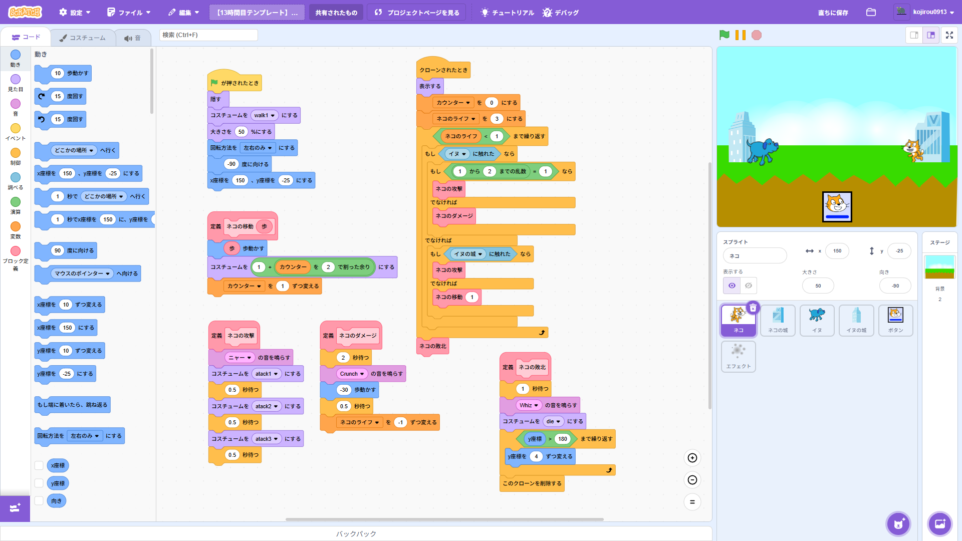 ※12時間目の授業では、にゃんこボタンとにゃんこのプログラムだけ作ります。
