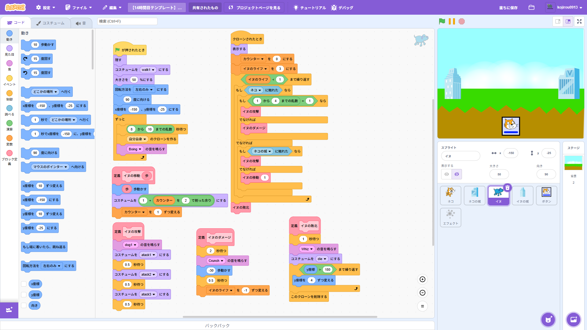 ※13時間目の授業では、わんこのプログラムだけ作ります。