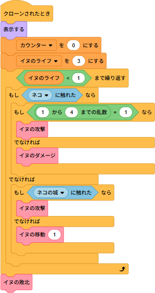 ※12時間目、13時間目の授業では、イヌの城のスクリプトは新たに作成しておりません。テンプレートにあらかじめ含まれていた初期設定用のスクリプトのみです。