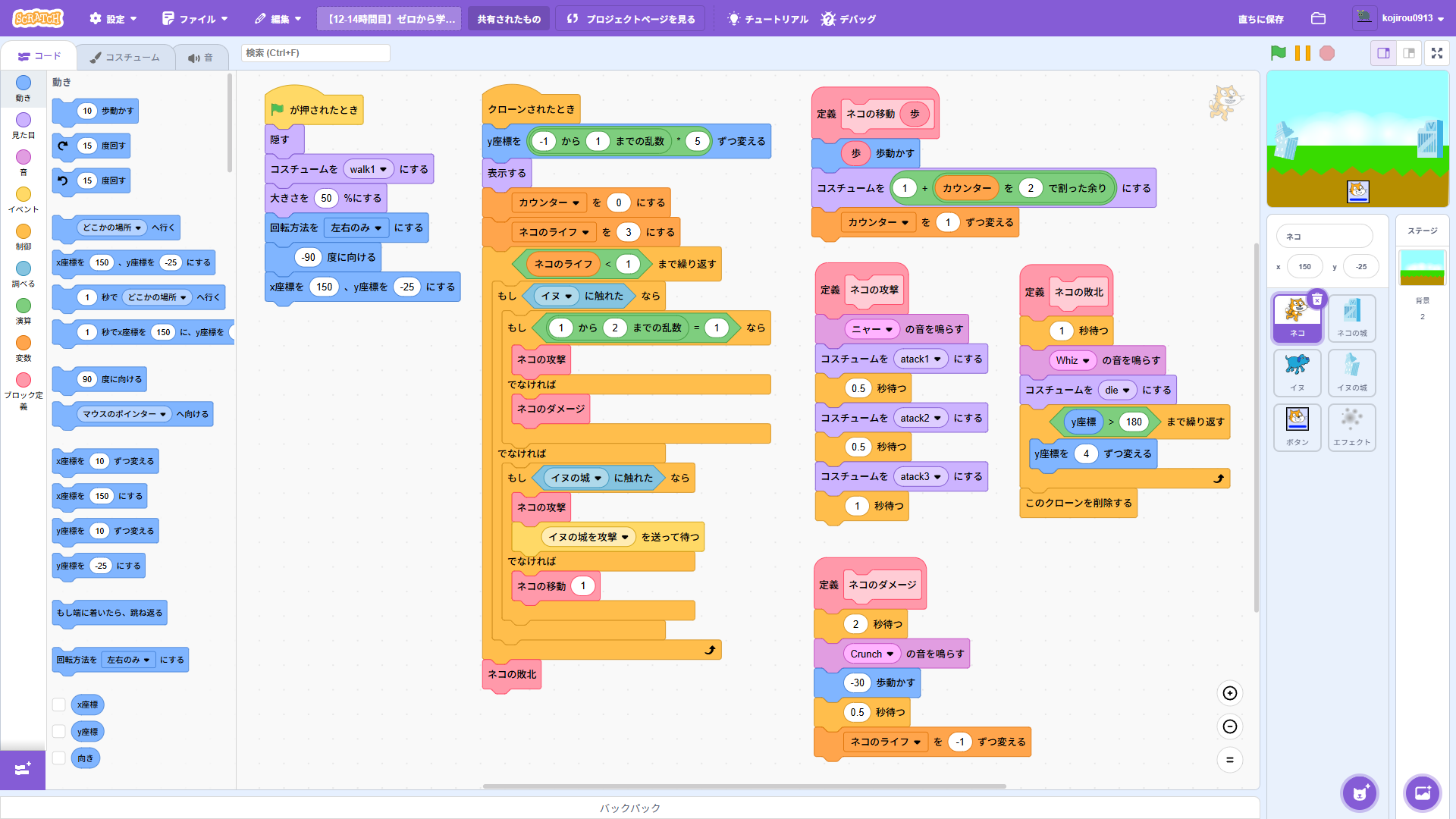 【14時間目】ゼロから学ぼうScratch:にゃんこ大戦争ゲーム3(完結編)