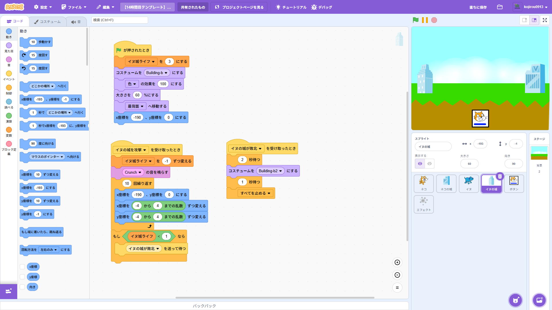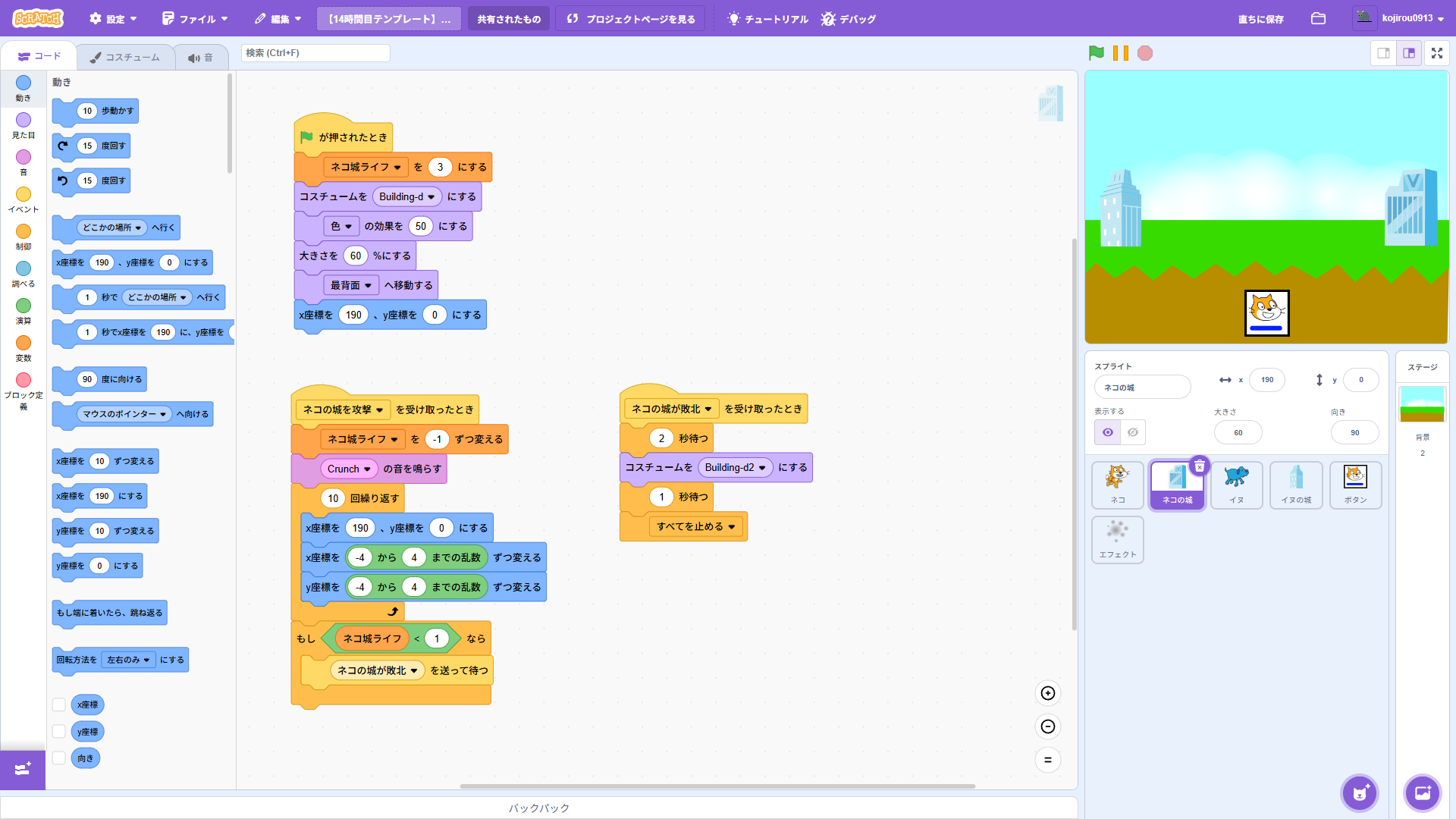 ※14時間目の授業で、にゃんこ大戦争ゲームは完成です。