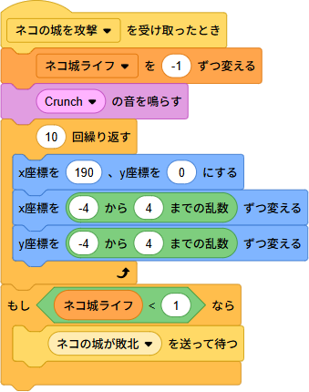 最終回となる今回は、ネコが城を攻撃した時の「メッセージ」のやり取りや、ライフが0になった時の「エフェクト演出」など、ゲームを仕上げる重要なテクニックを学びます。