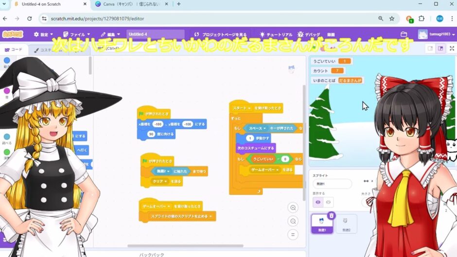 二つ目はだるまさんがころんだです。スペースキーで動かします。