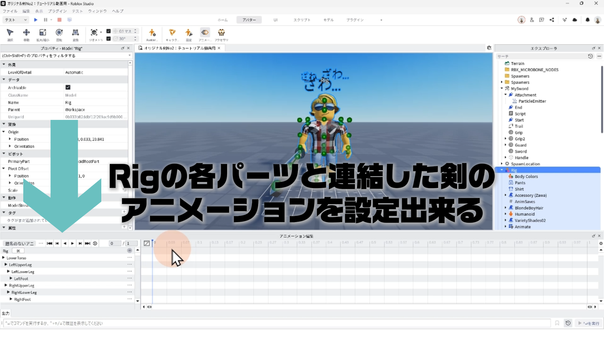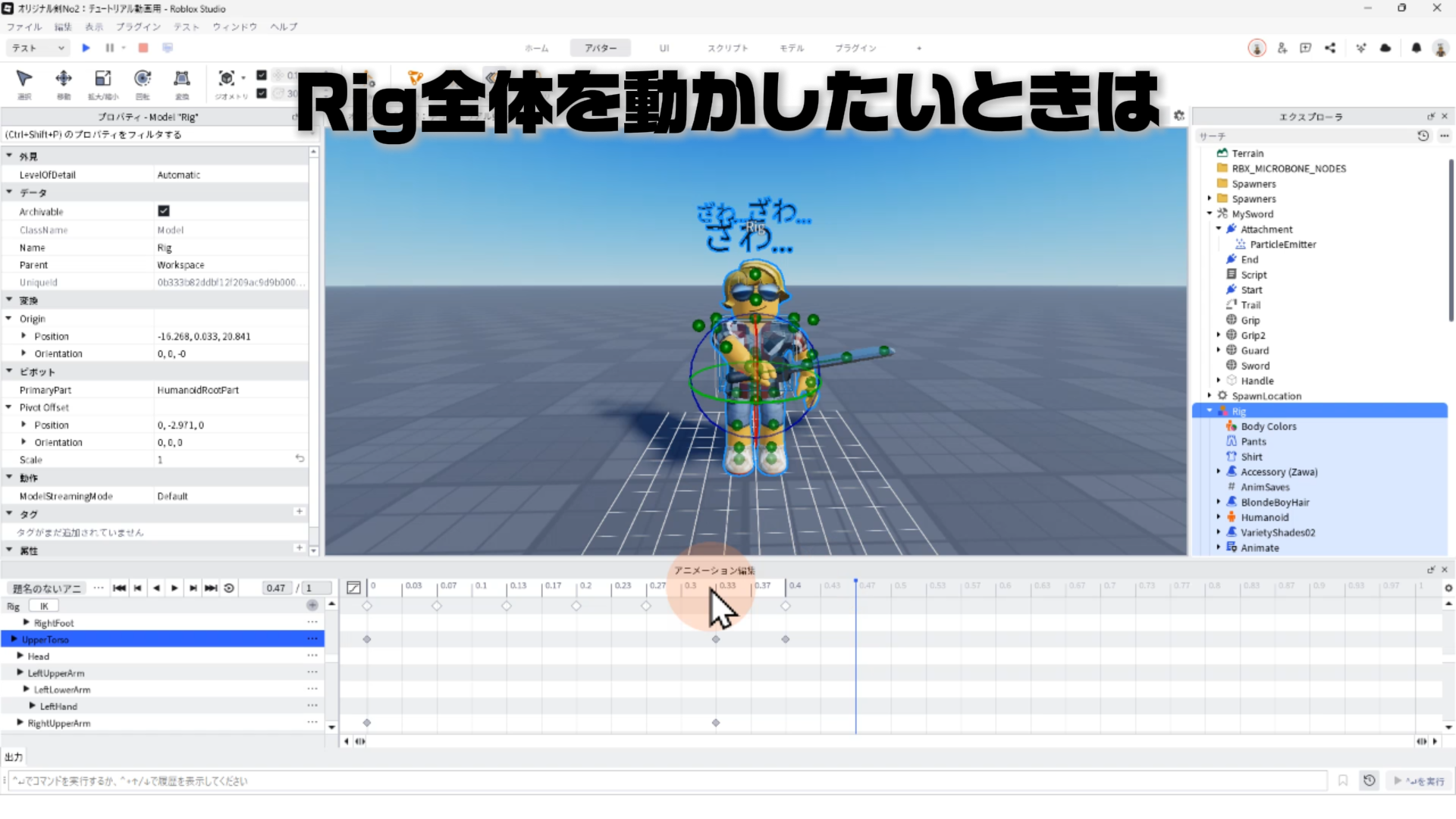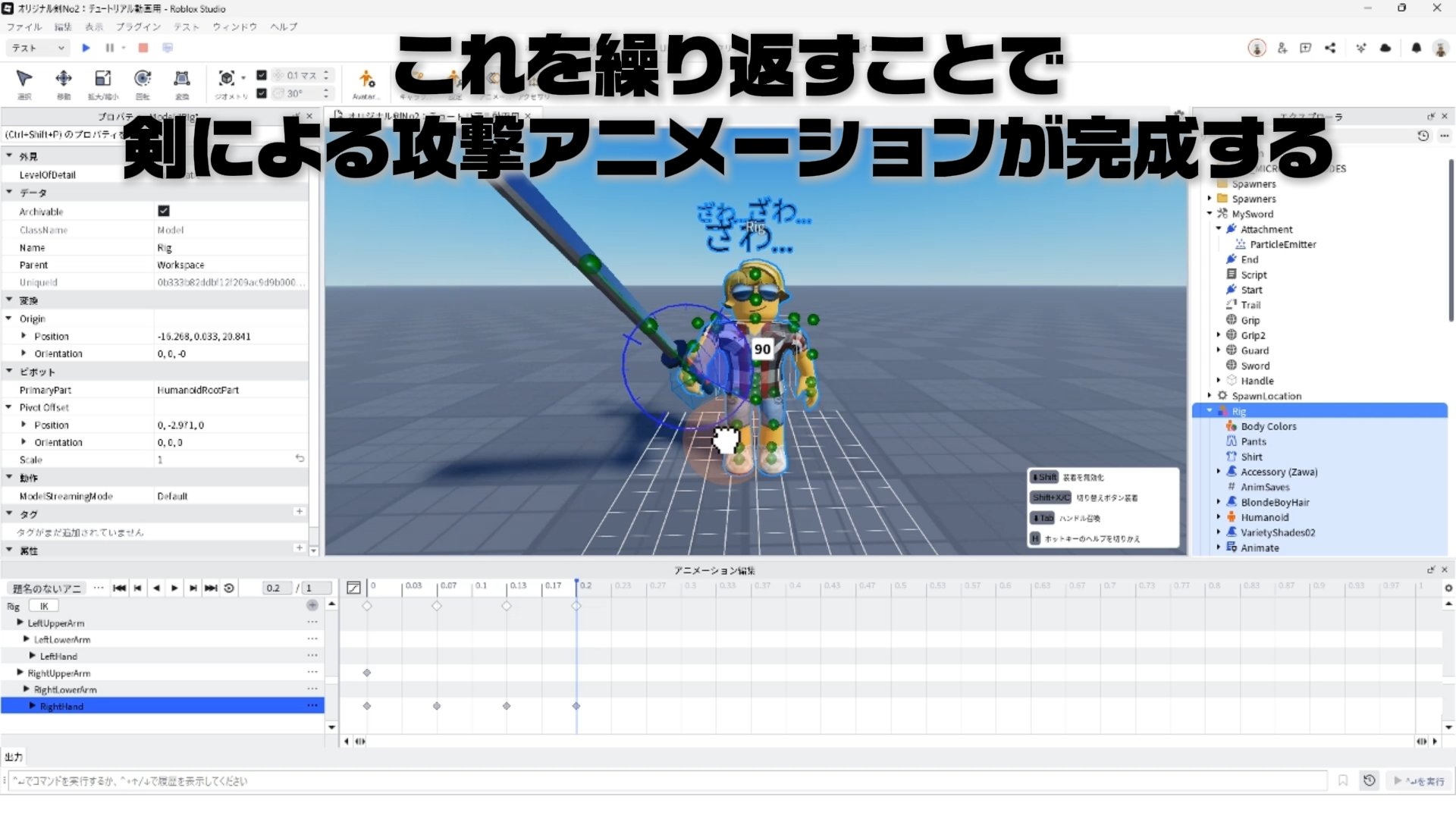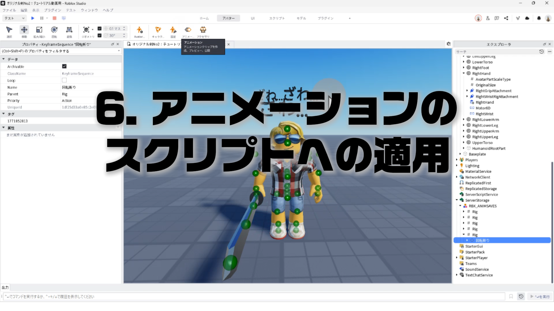 キャラクター(Rig)と剣を連結する「Motor6D」、アニメーションエディタでアニメーションを作るやり方、アニメーションをスクリプトへ反映させる手順などについて詳しく解説します。✨