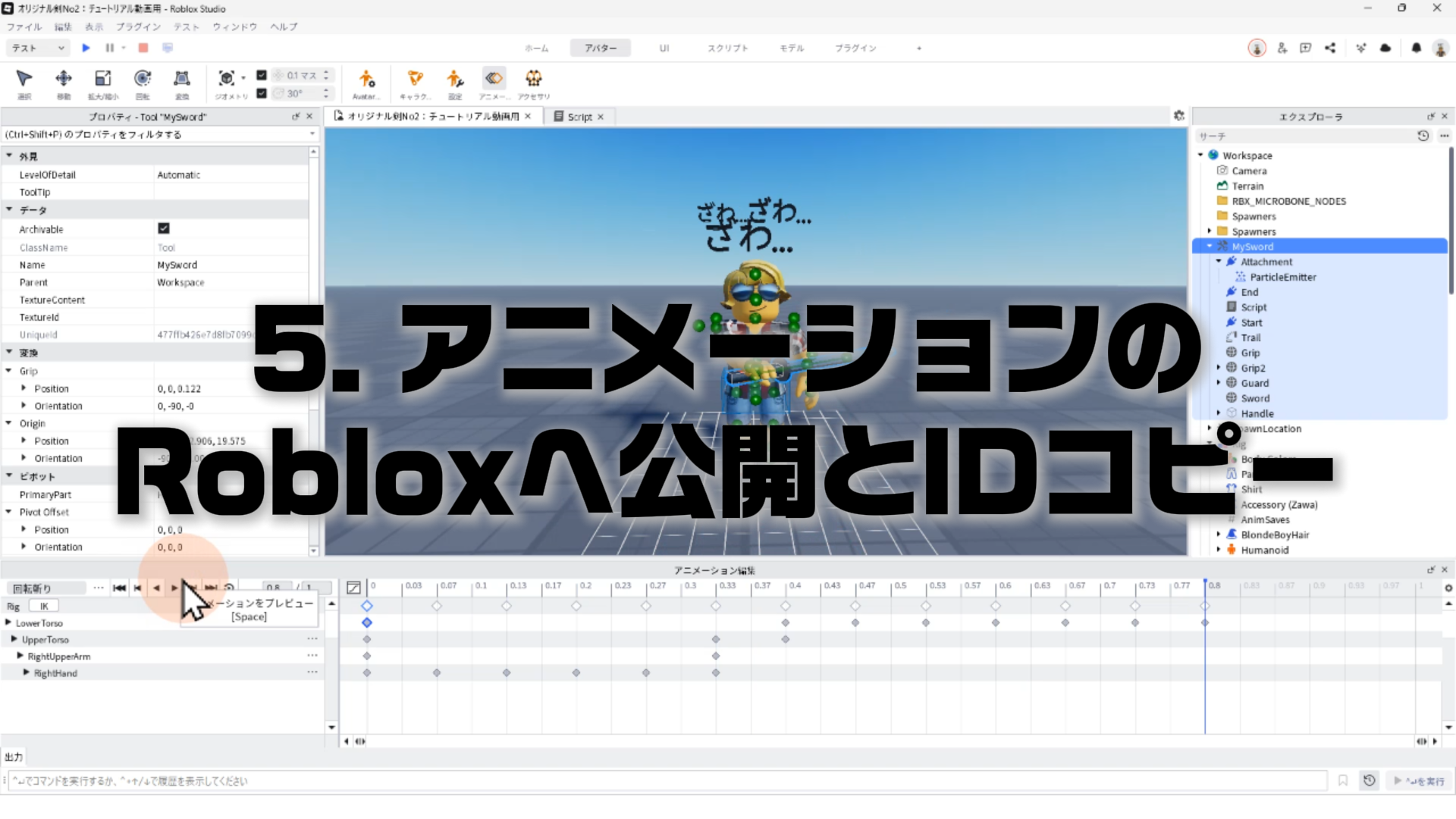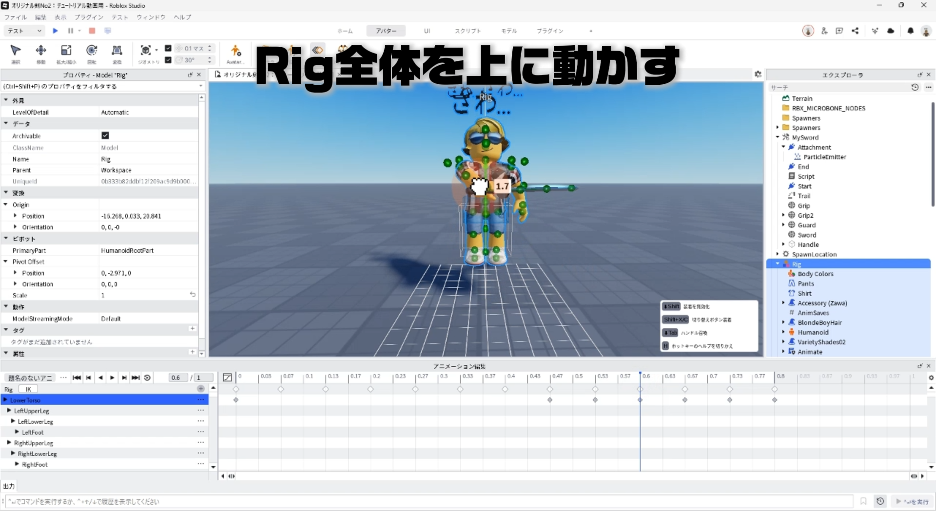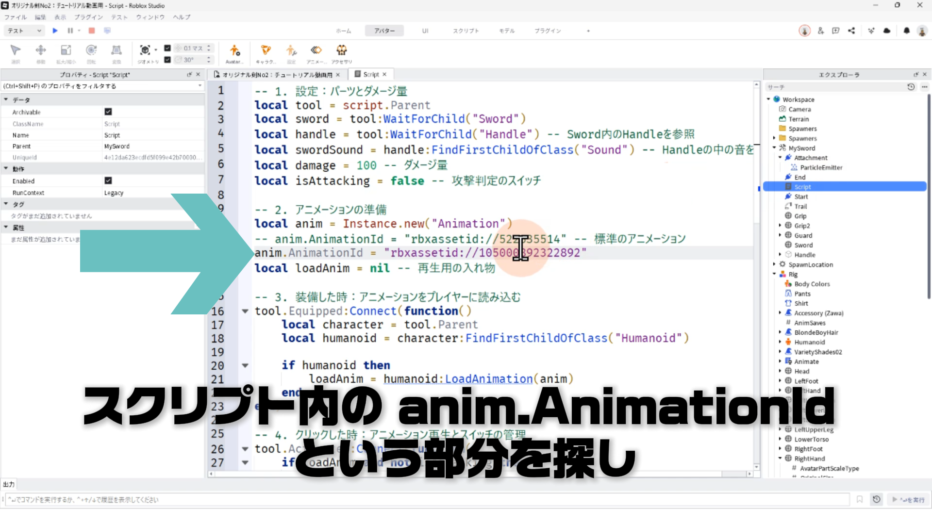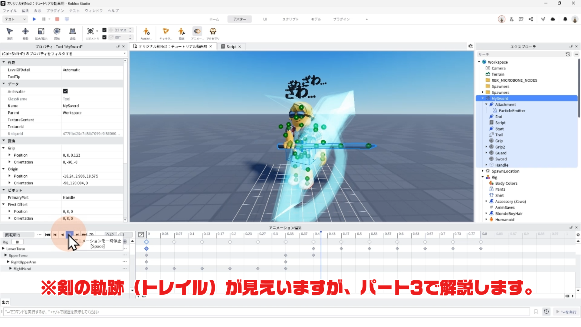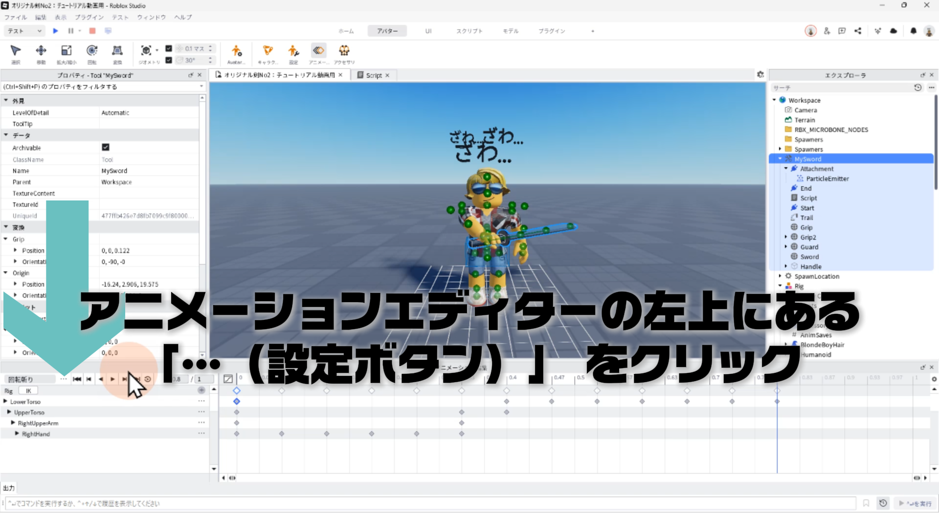 キャラクター(Rig)と剣を連結する「Motor6D」、アニメーションエディタでアニメーションを作るやり方、アニメーションをスクリプトへ反映させる手順などについて詳しく解説します。✨