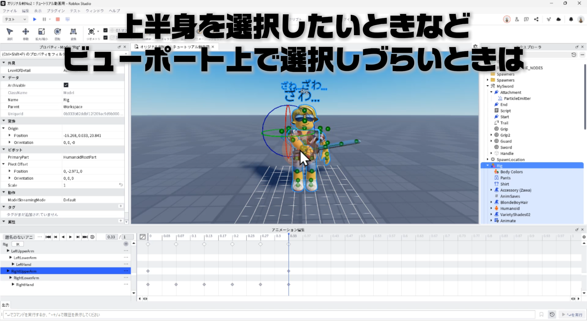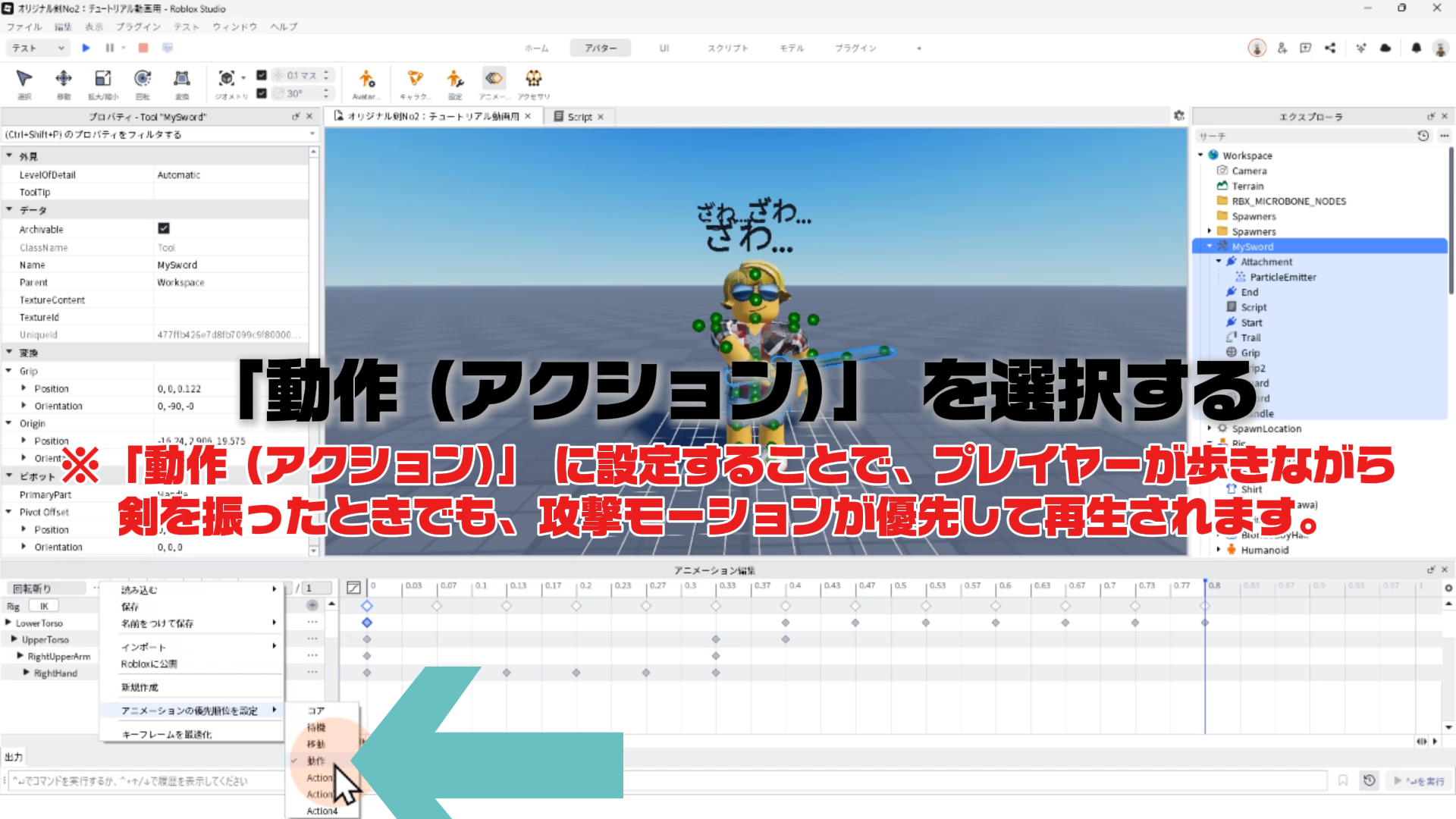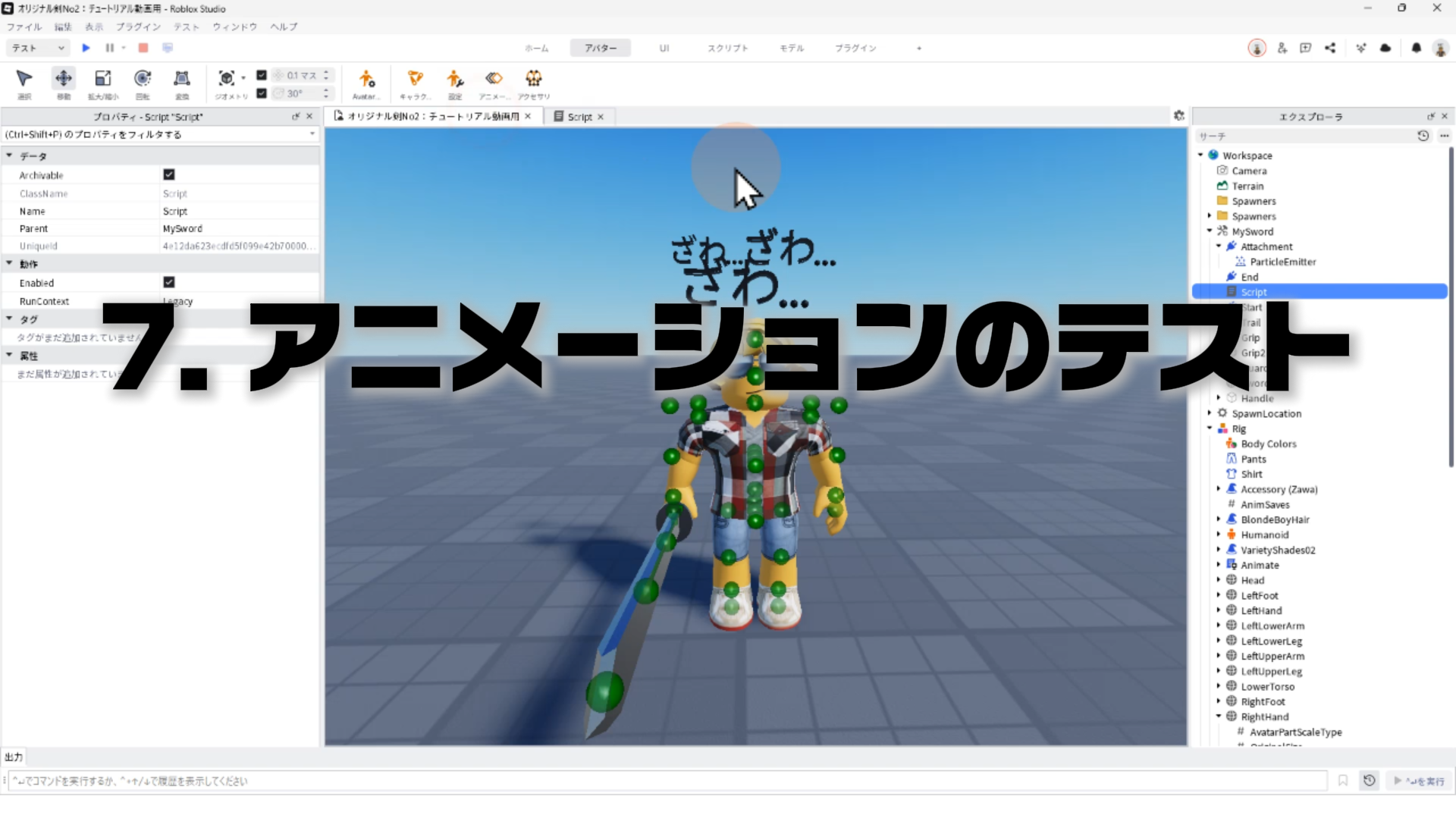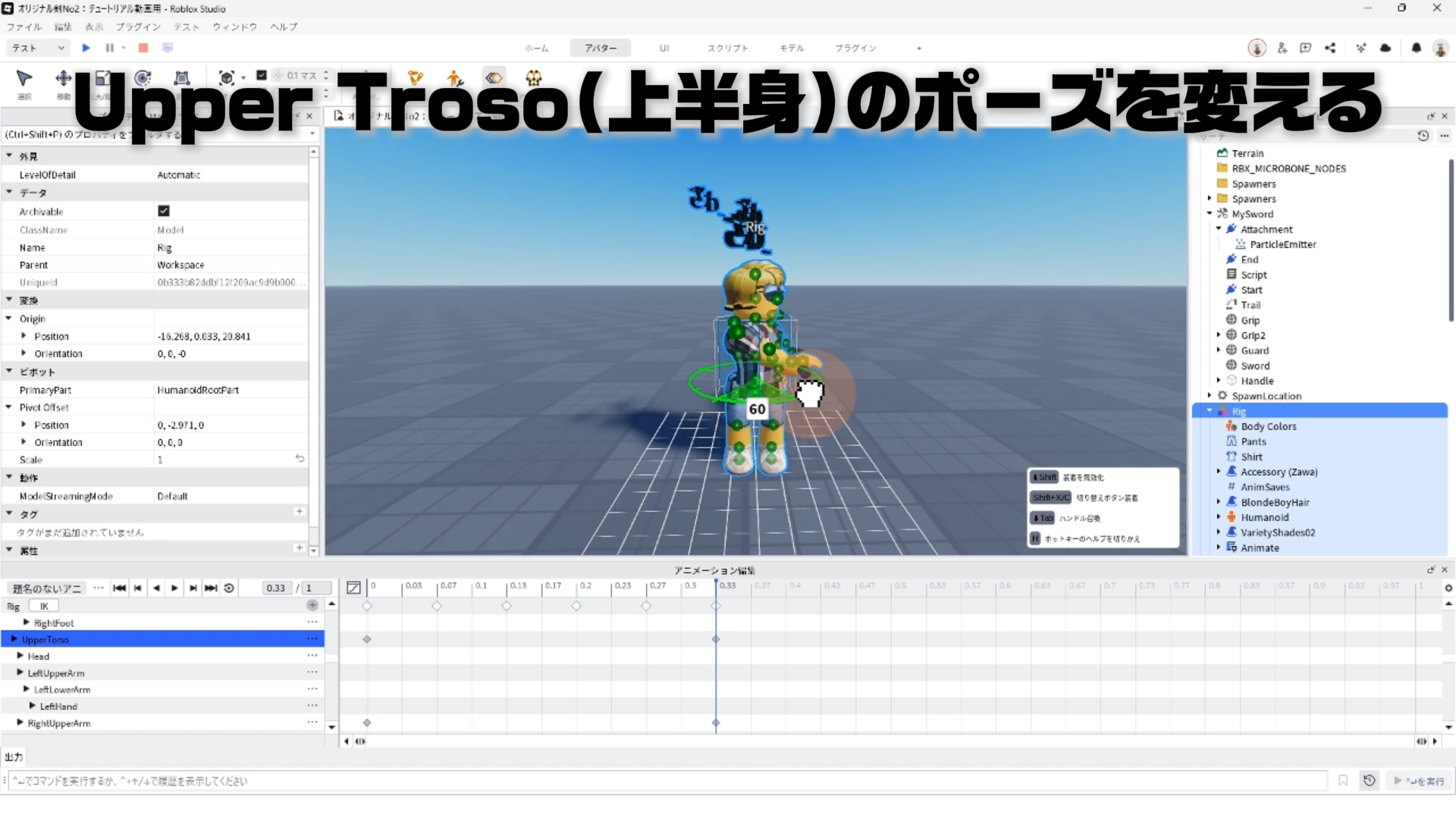 キャラクター(Rig)と剣を連結する「Motor6D」、アニメーションエディタでアニメーションを作るやり方、アニメーションをスクリプトへ反映させる手順などについて詳しく解説します。✨