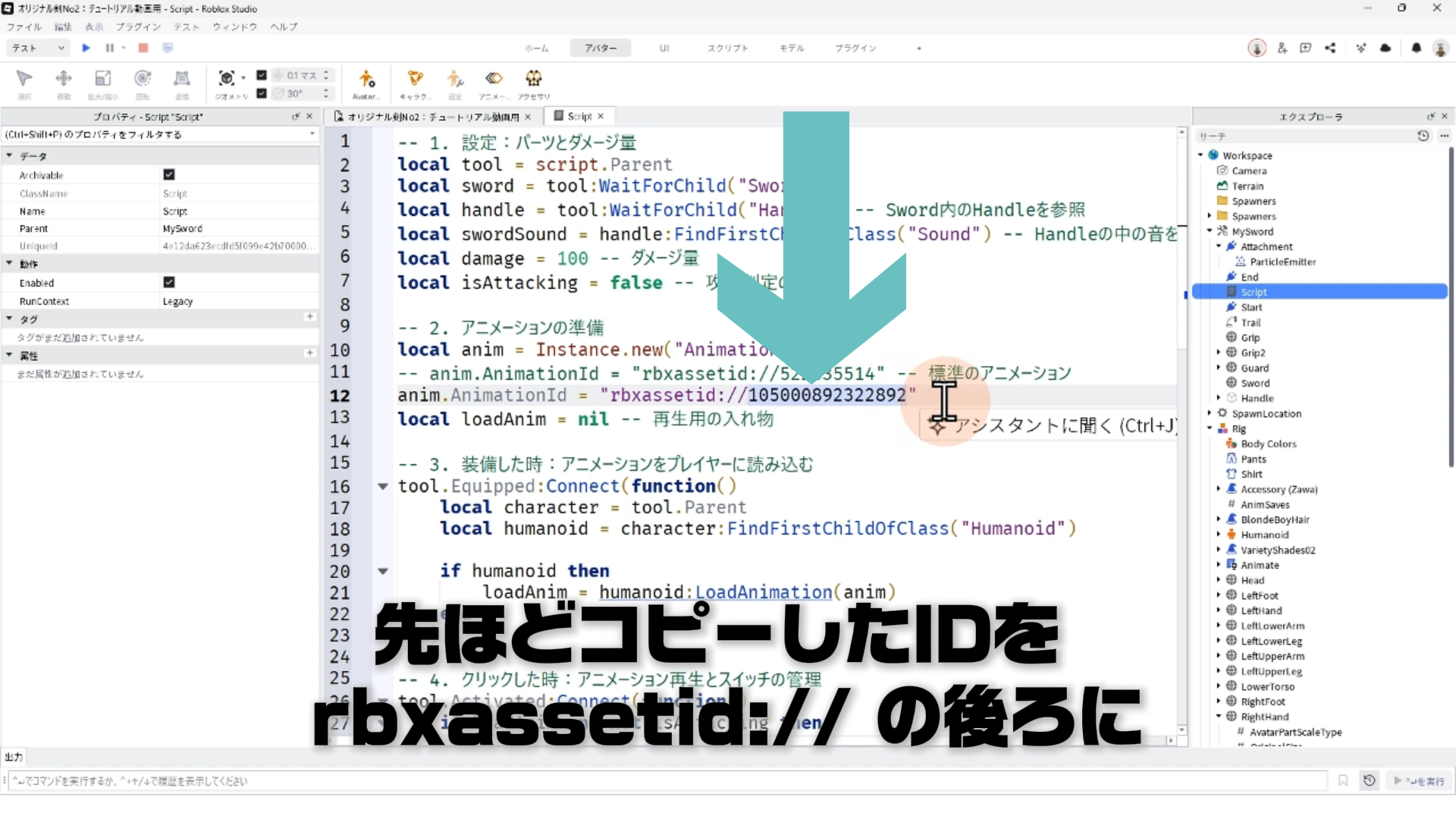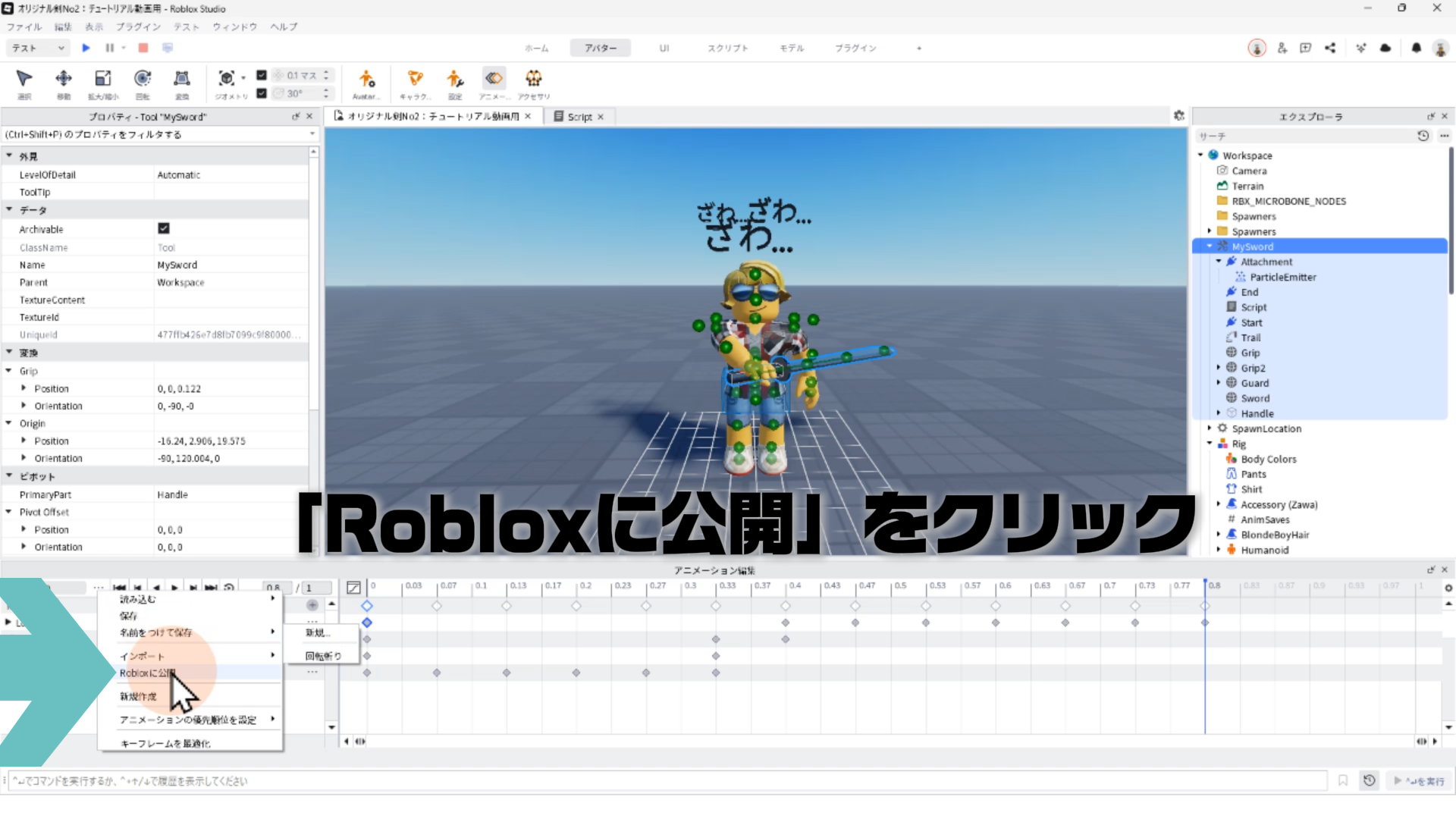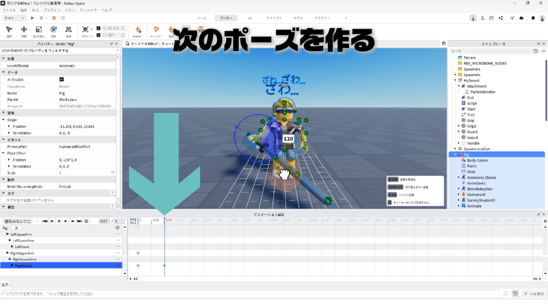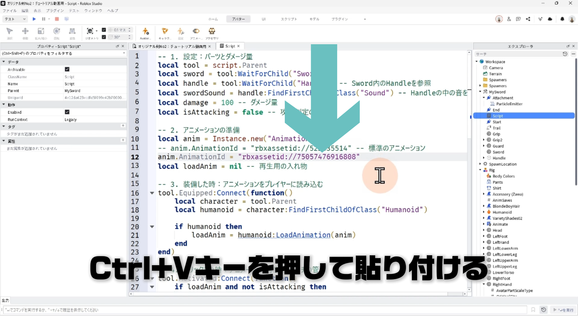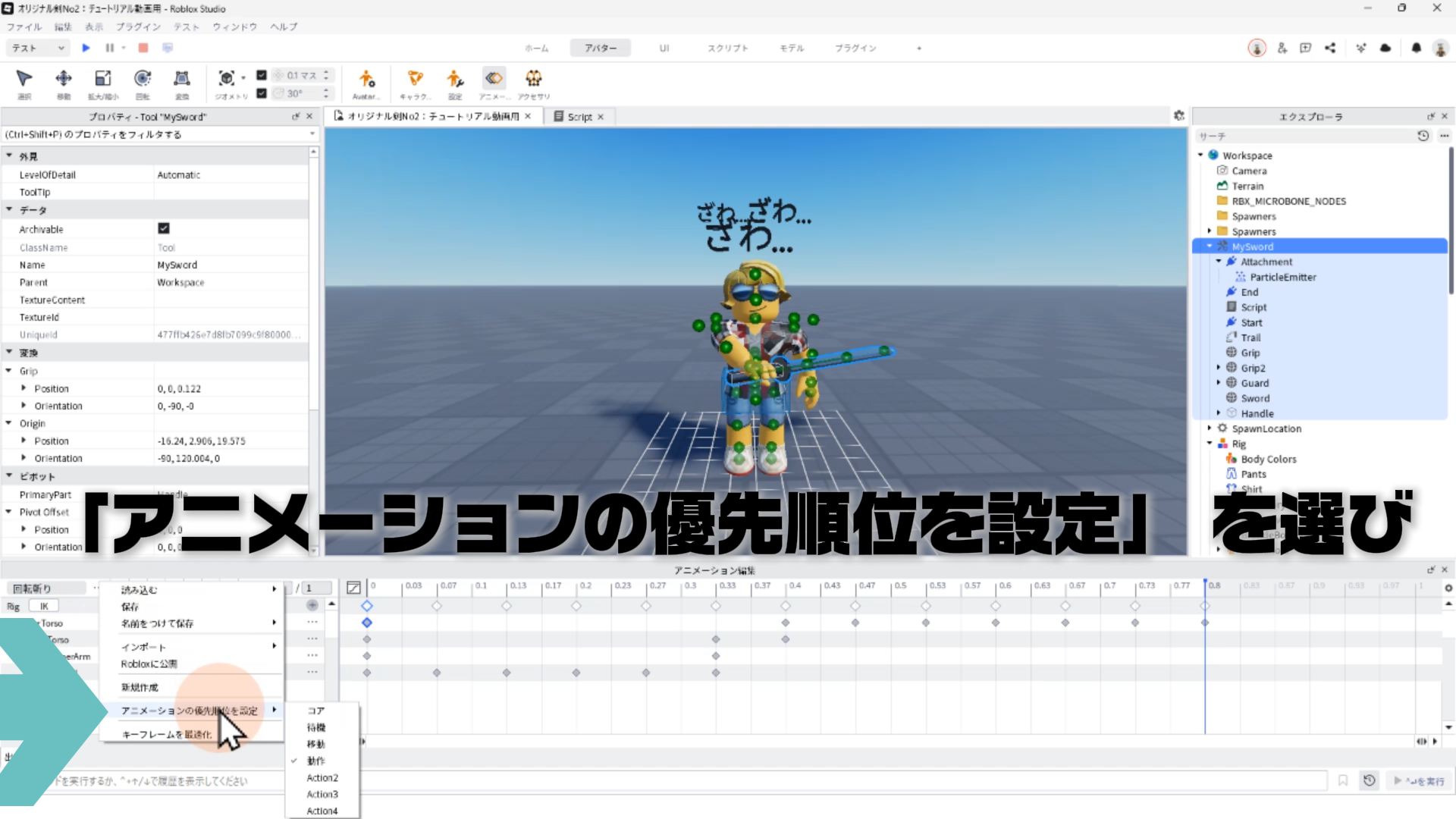 キャラクター(Rig)と剣を連結する「Motor6D」、アニメーションエディタでアニメーションを作るやり方、アニメーションをスクリプトへ反映させる手順などについて詳しく解説します。✨