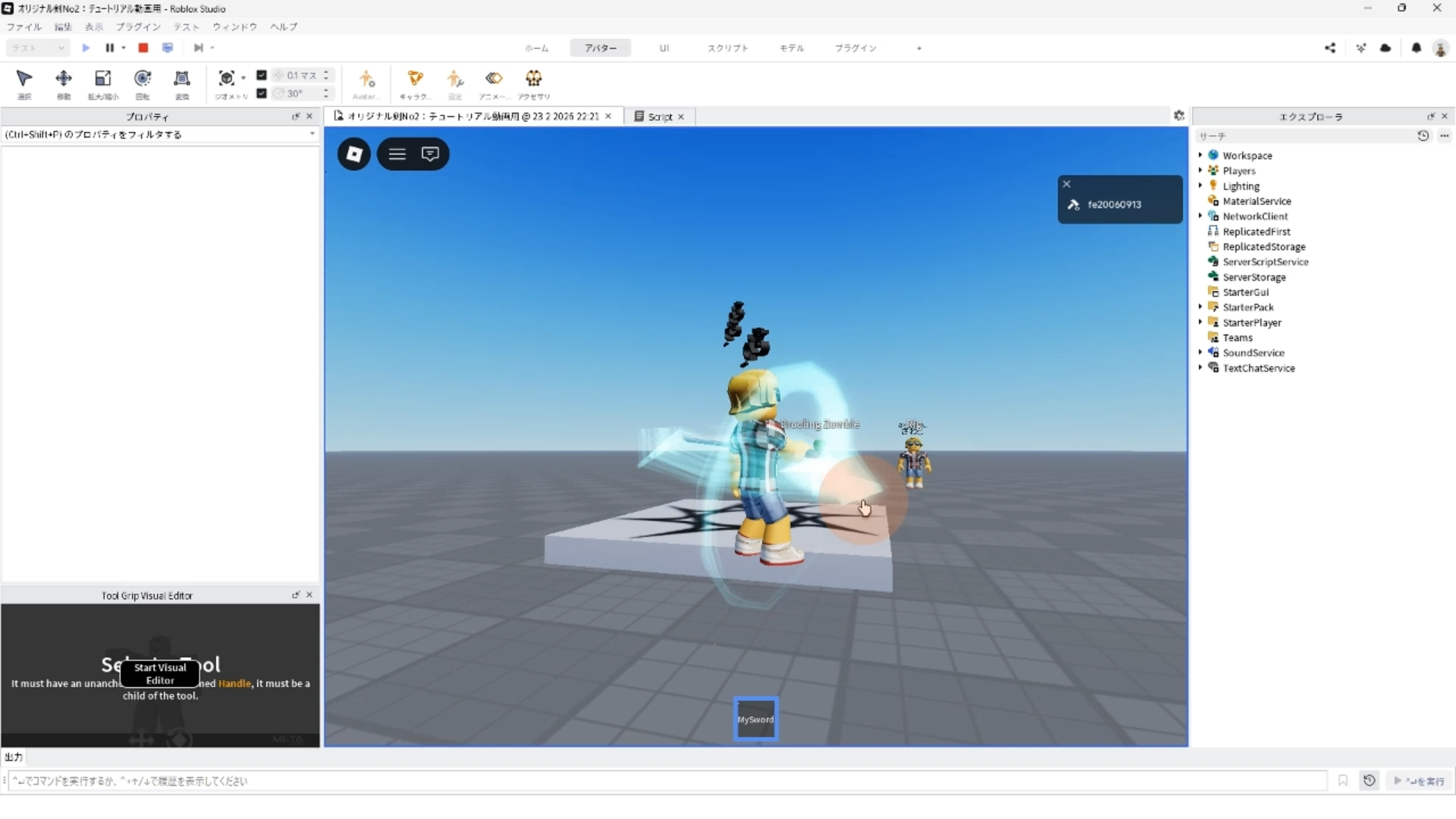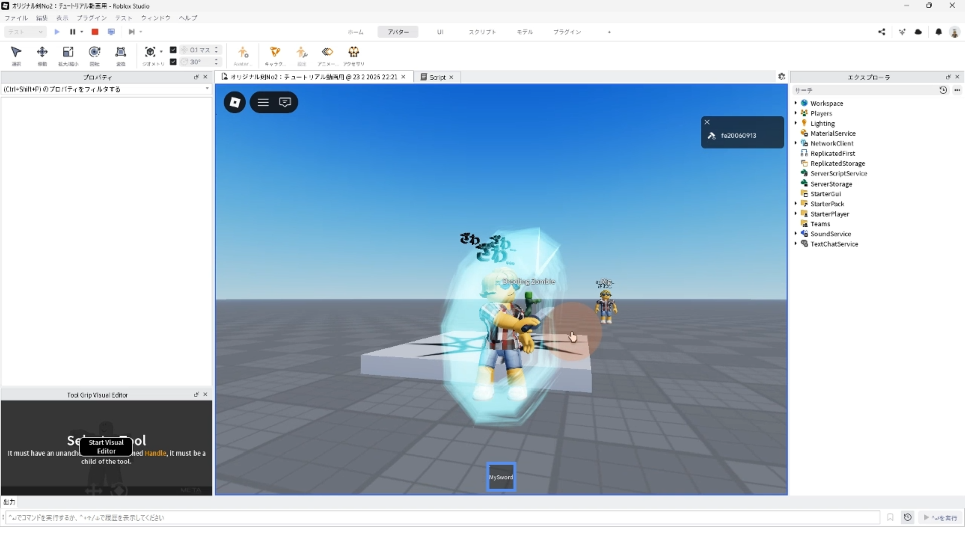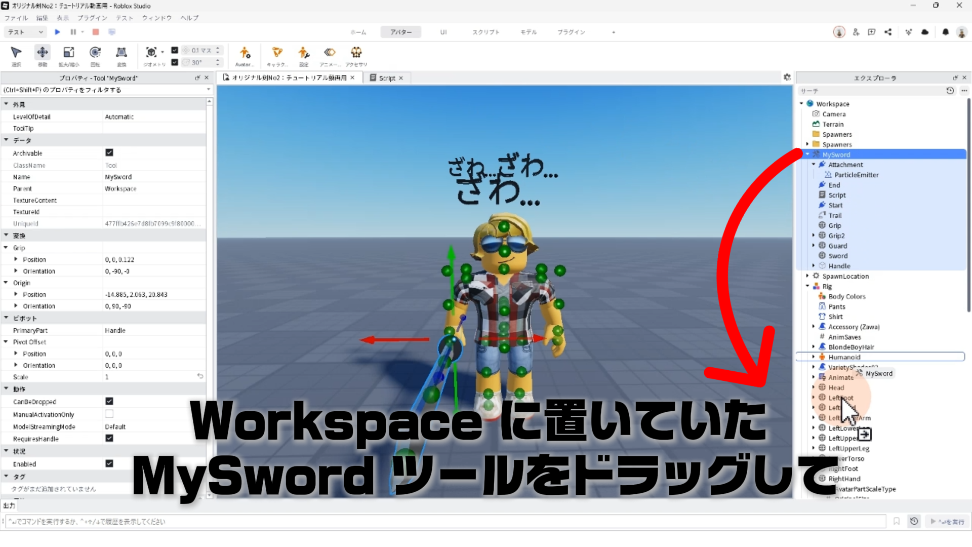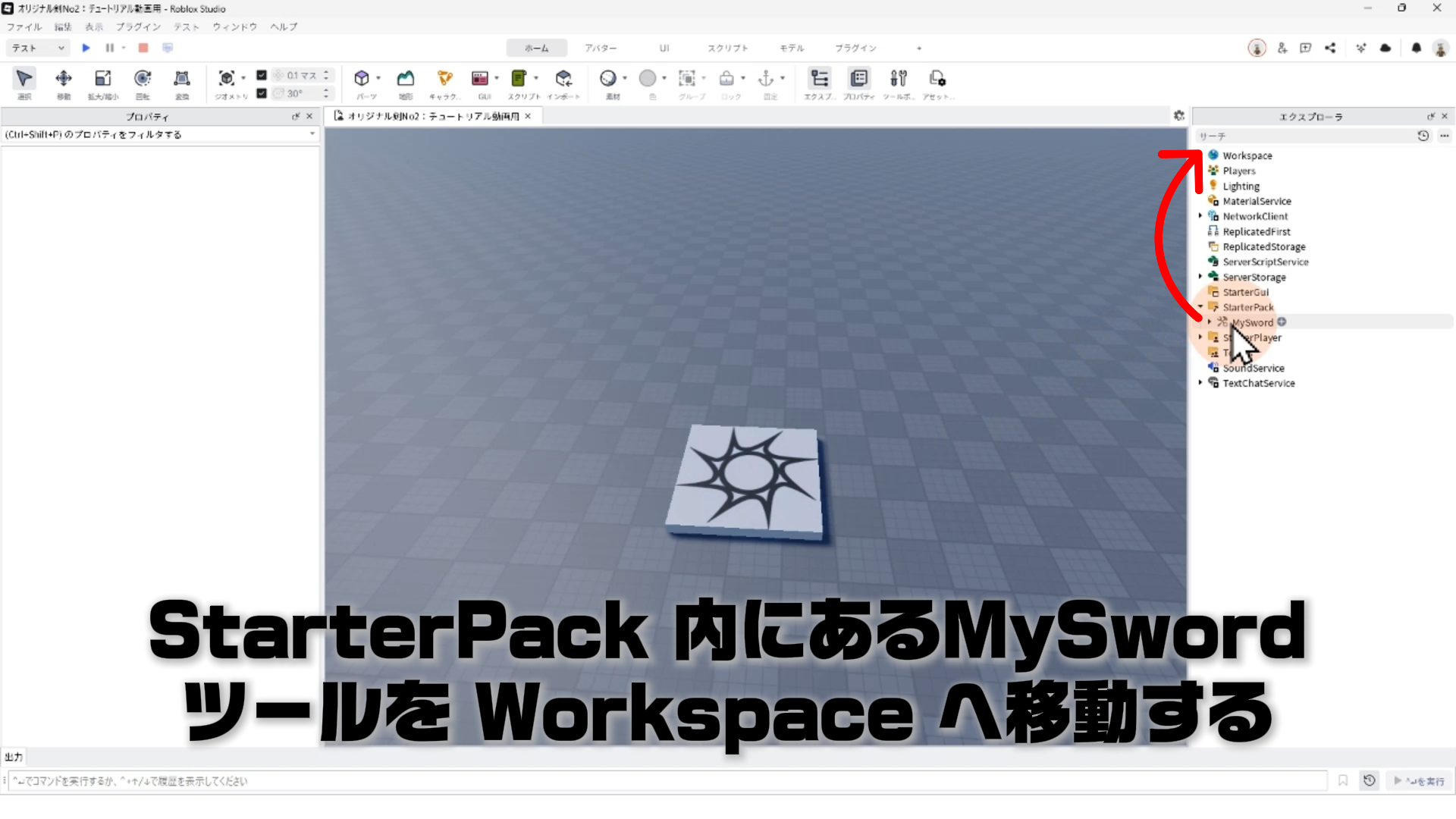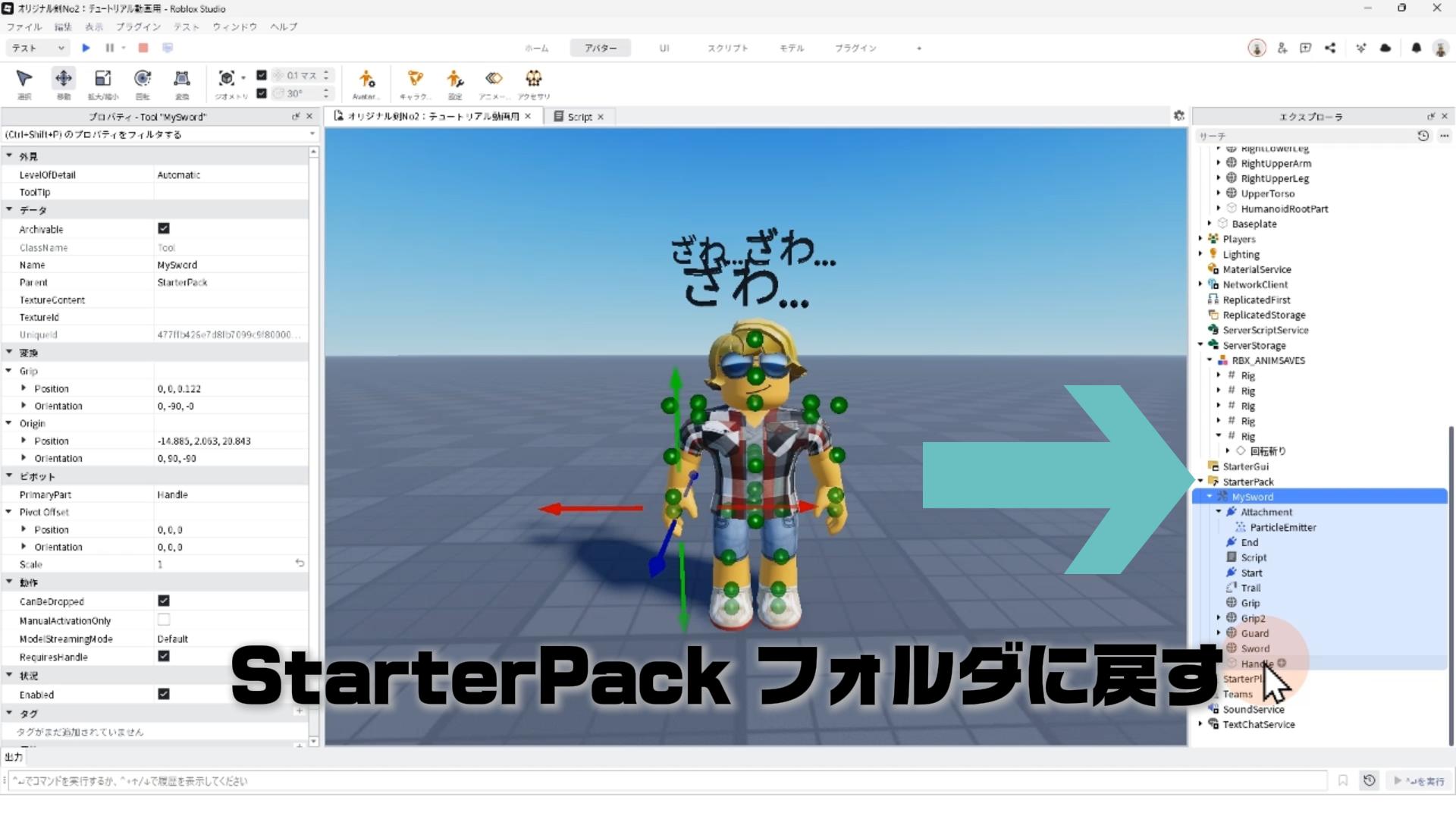 StarterPack 内にあるMySword ツールを Workspace へ移動して