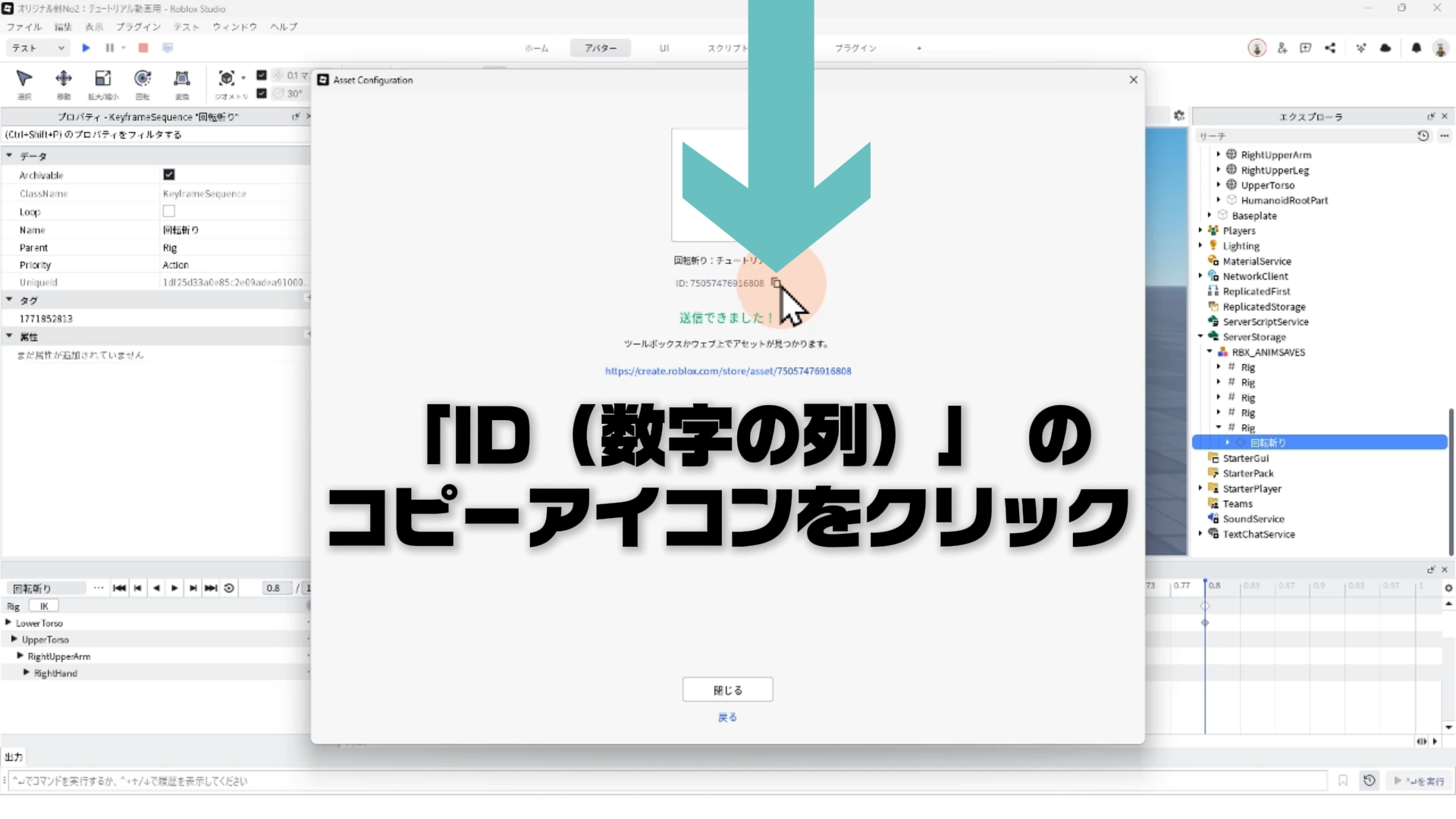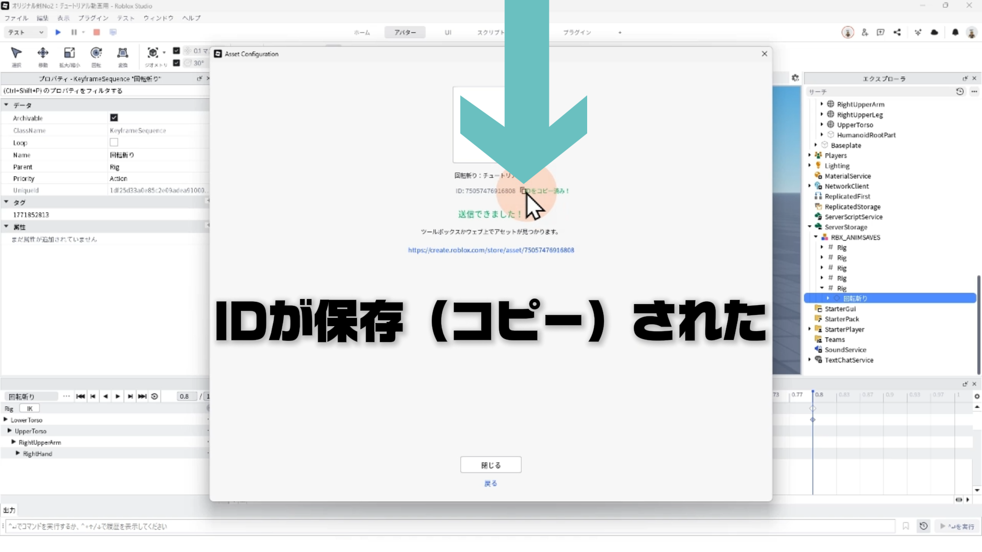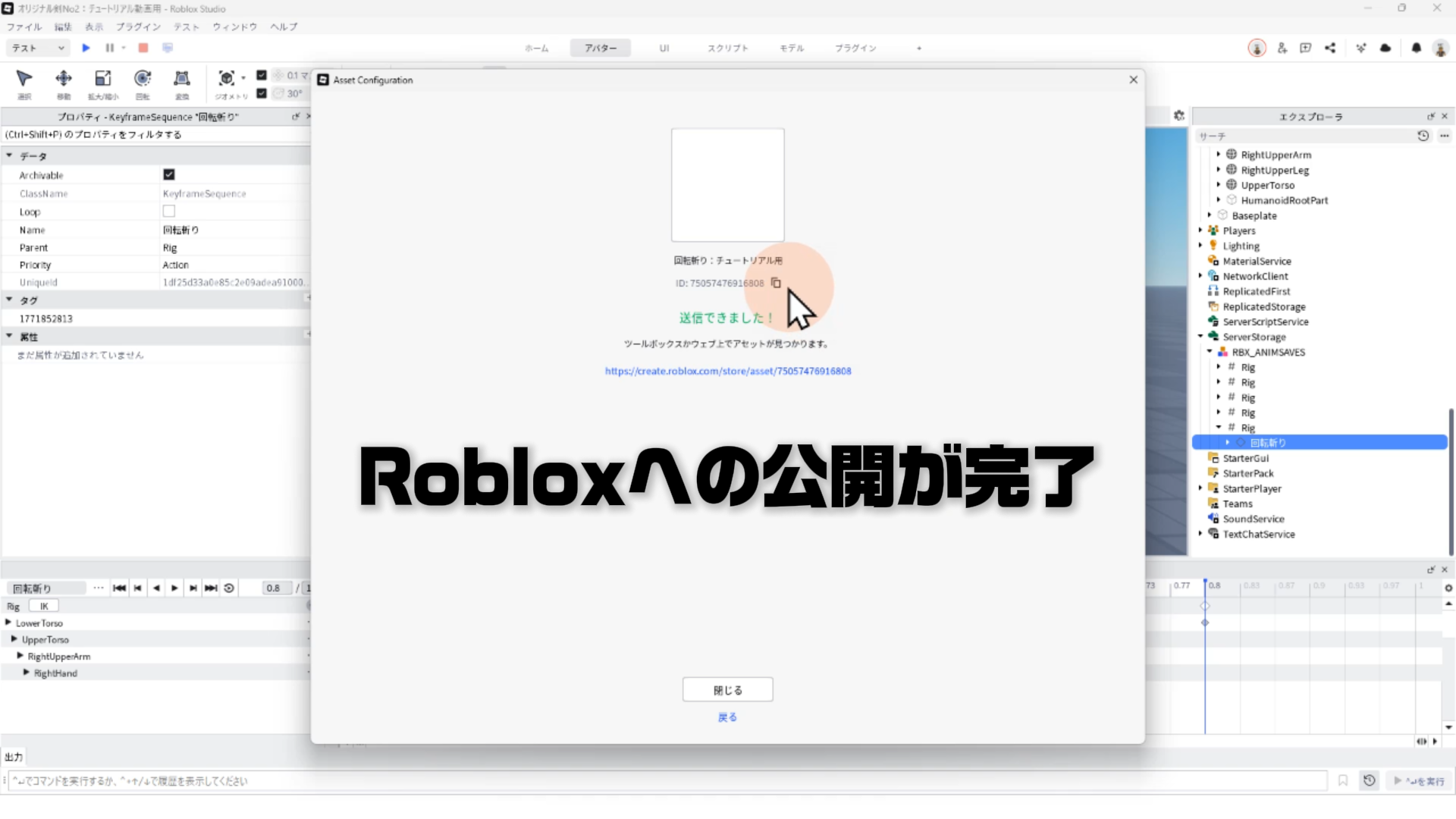 05:47 アニメーションのRobloxへ公開とIDコピー