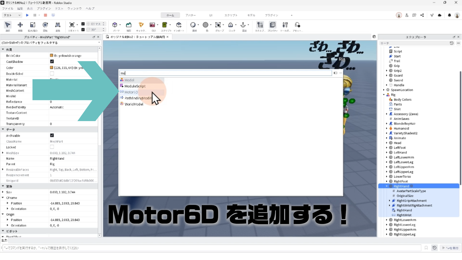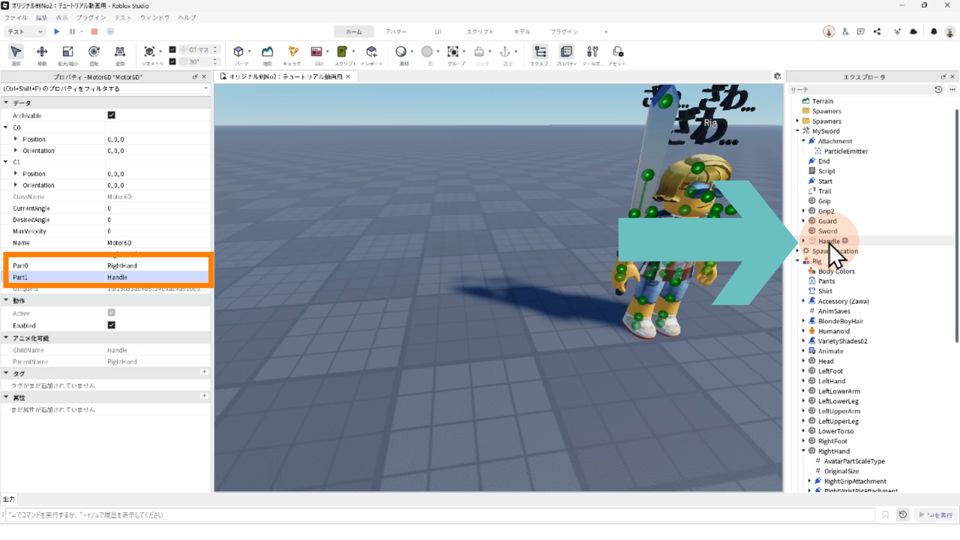 ✅ 1. キャラクター(Rig)と剣を連結する「Motor6D」の使い方