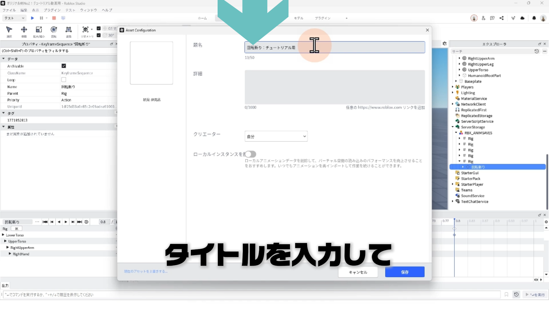 「Robloxへ公開」手順1:タイトルを入力して