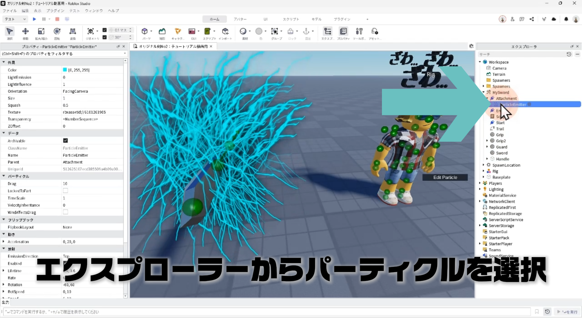 エクスプローラー画面からパーティクルを選択して