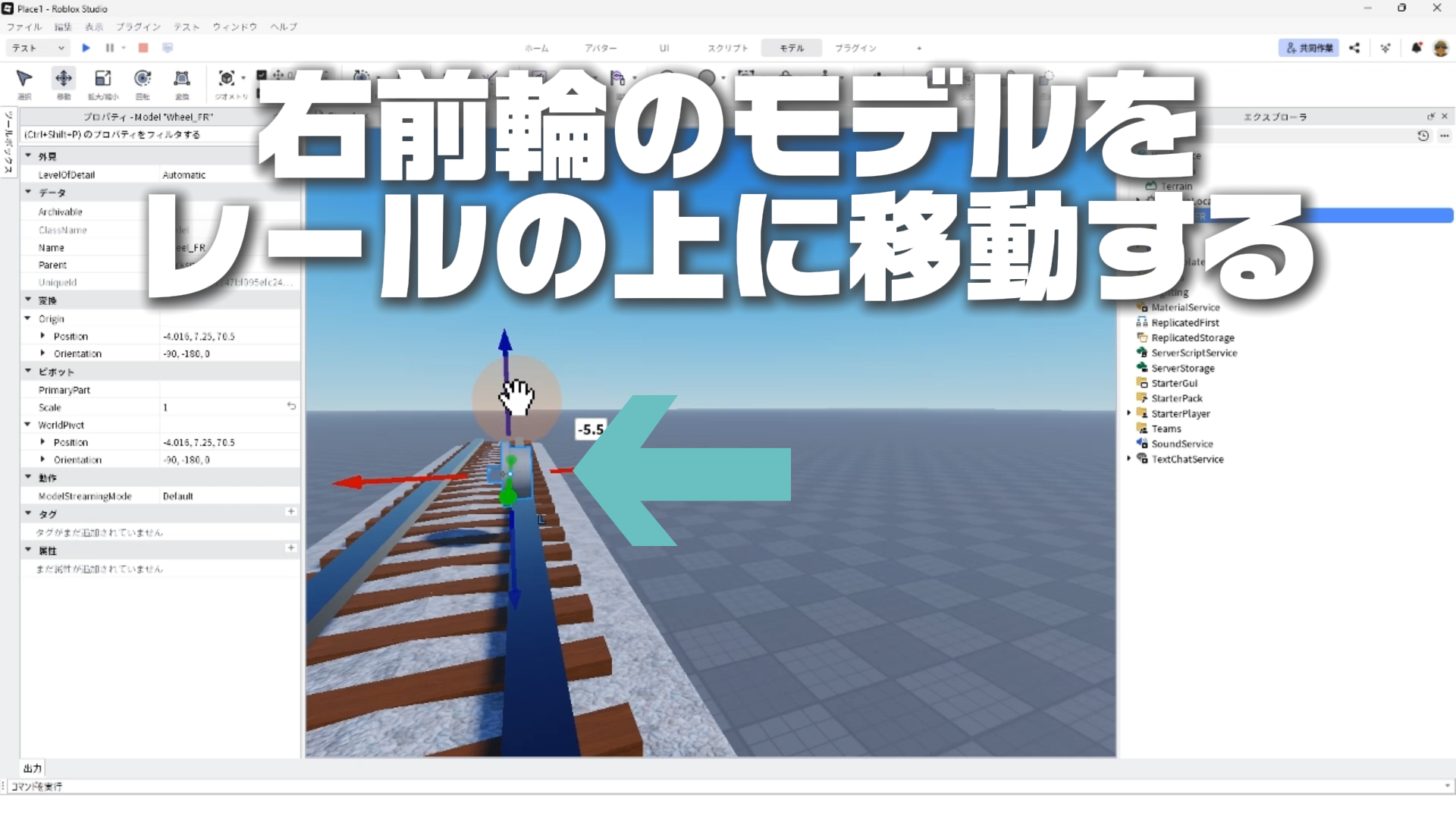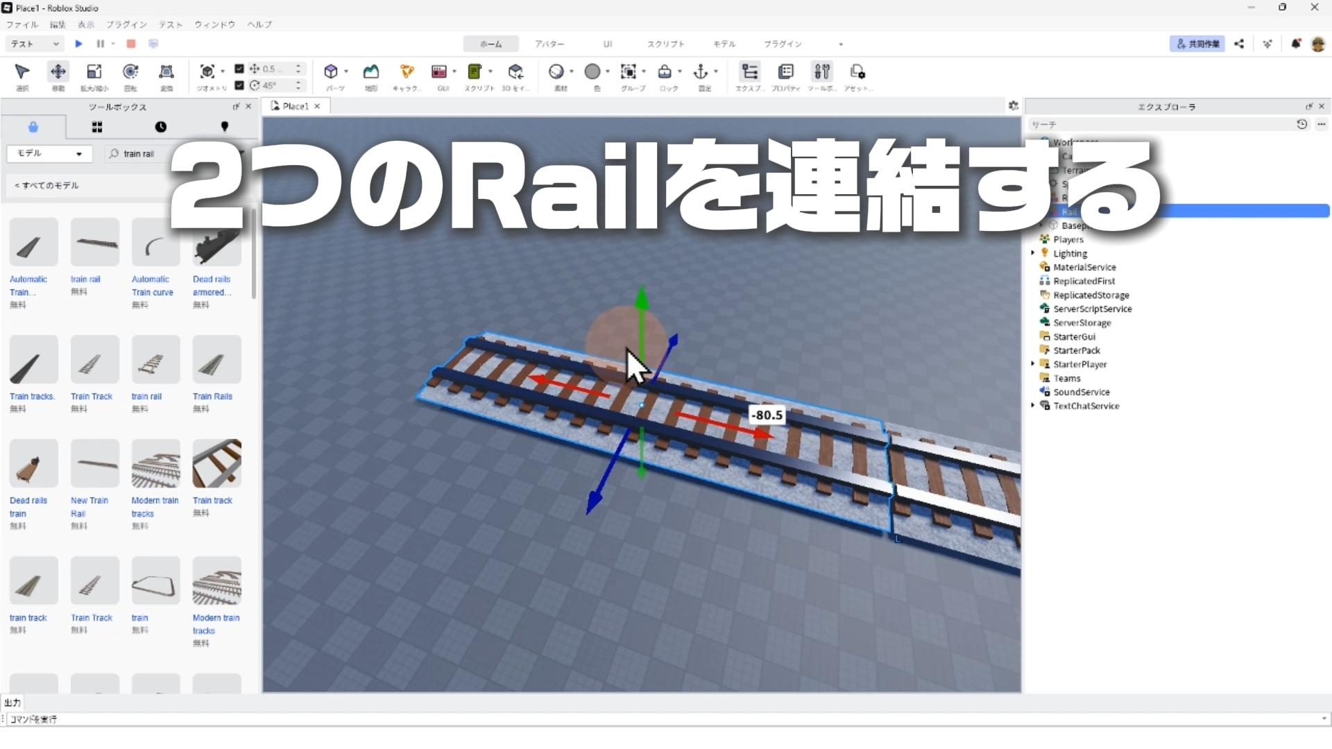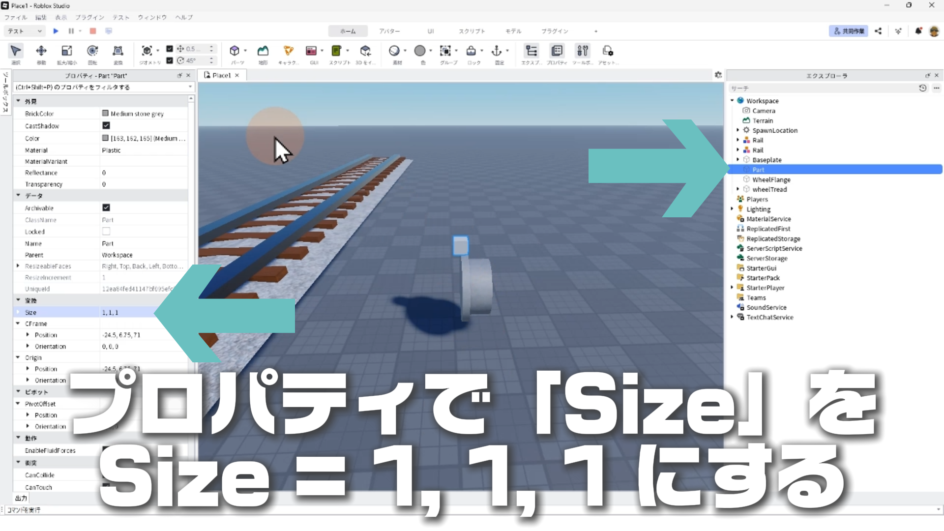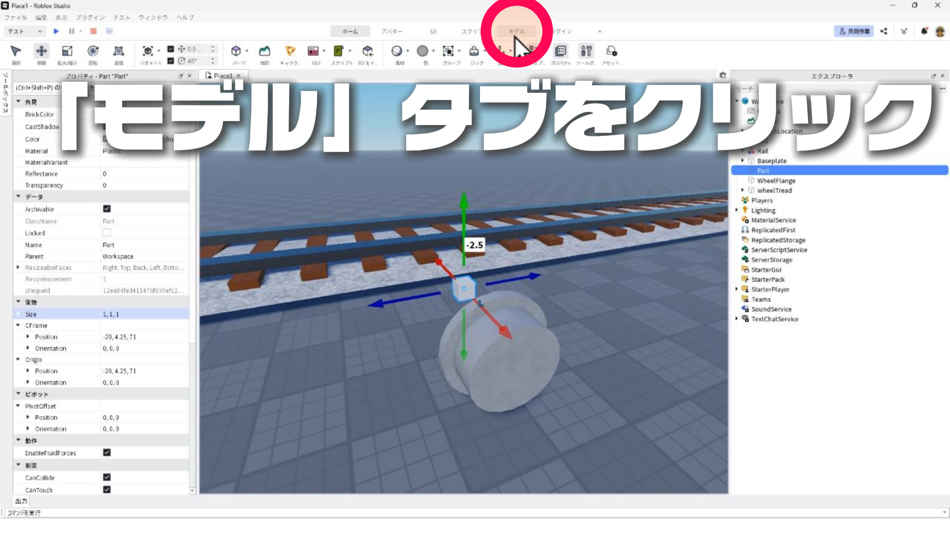 Roblox Studioでヒンジコンストレイント(HingeConstraint)を使い、車輪が回転してレールの上を前後に走るトロッコを制作します。