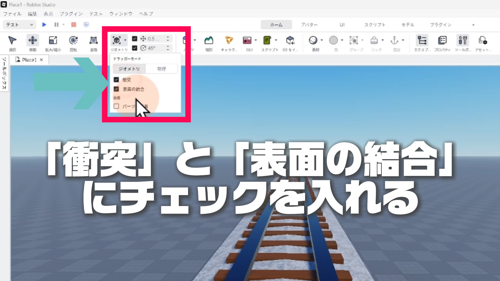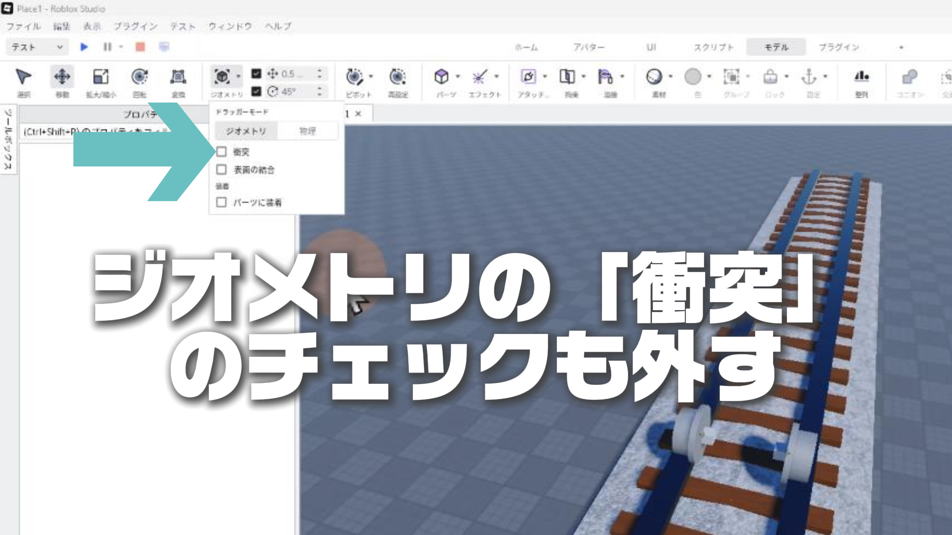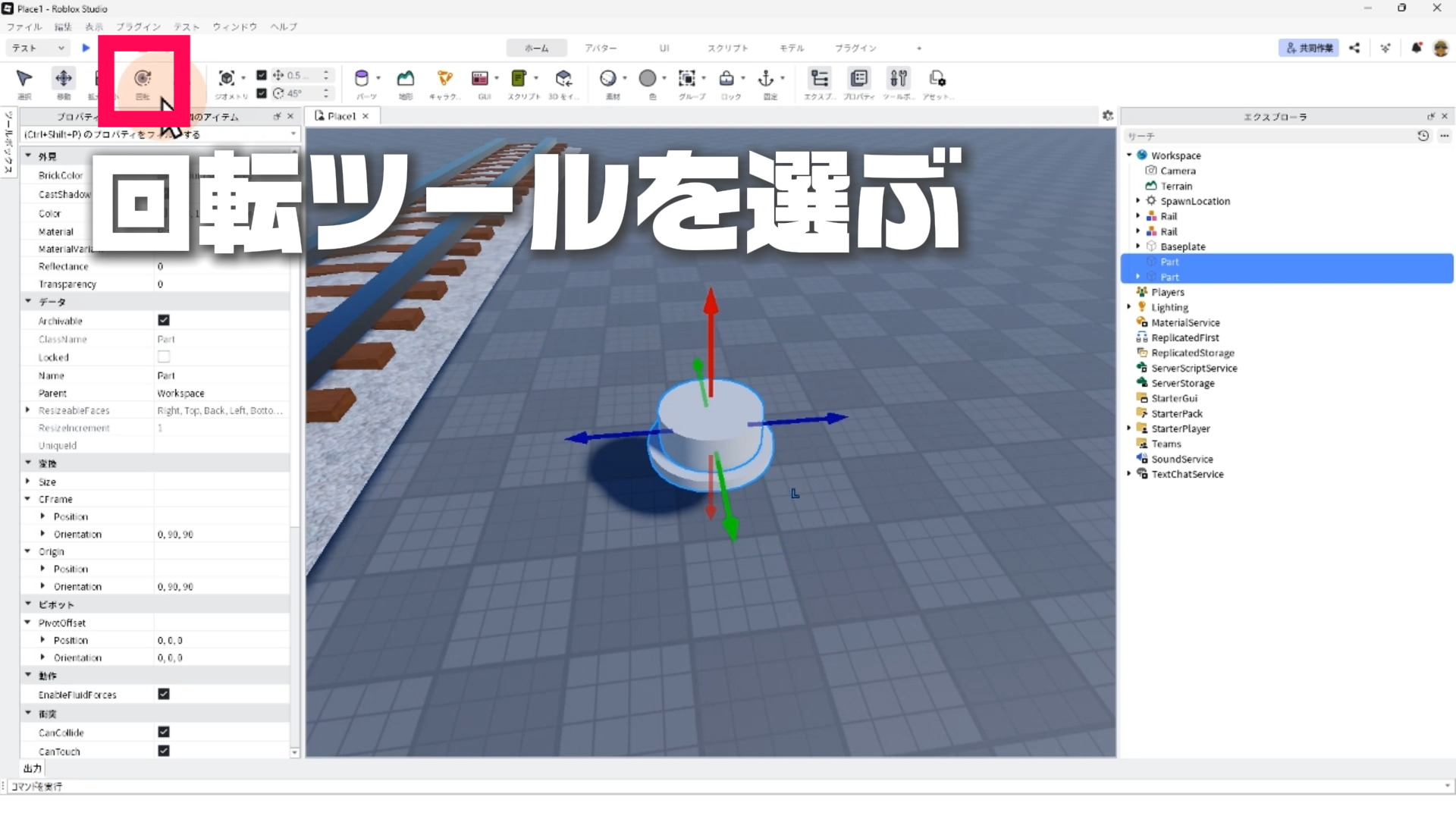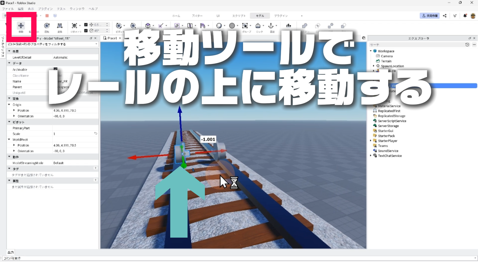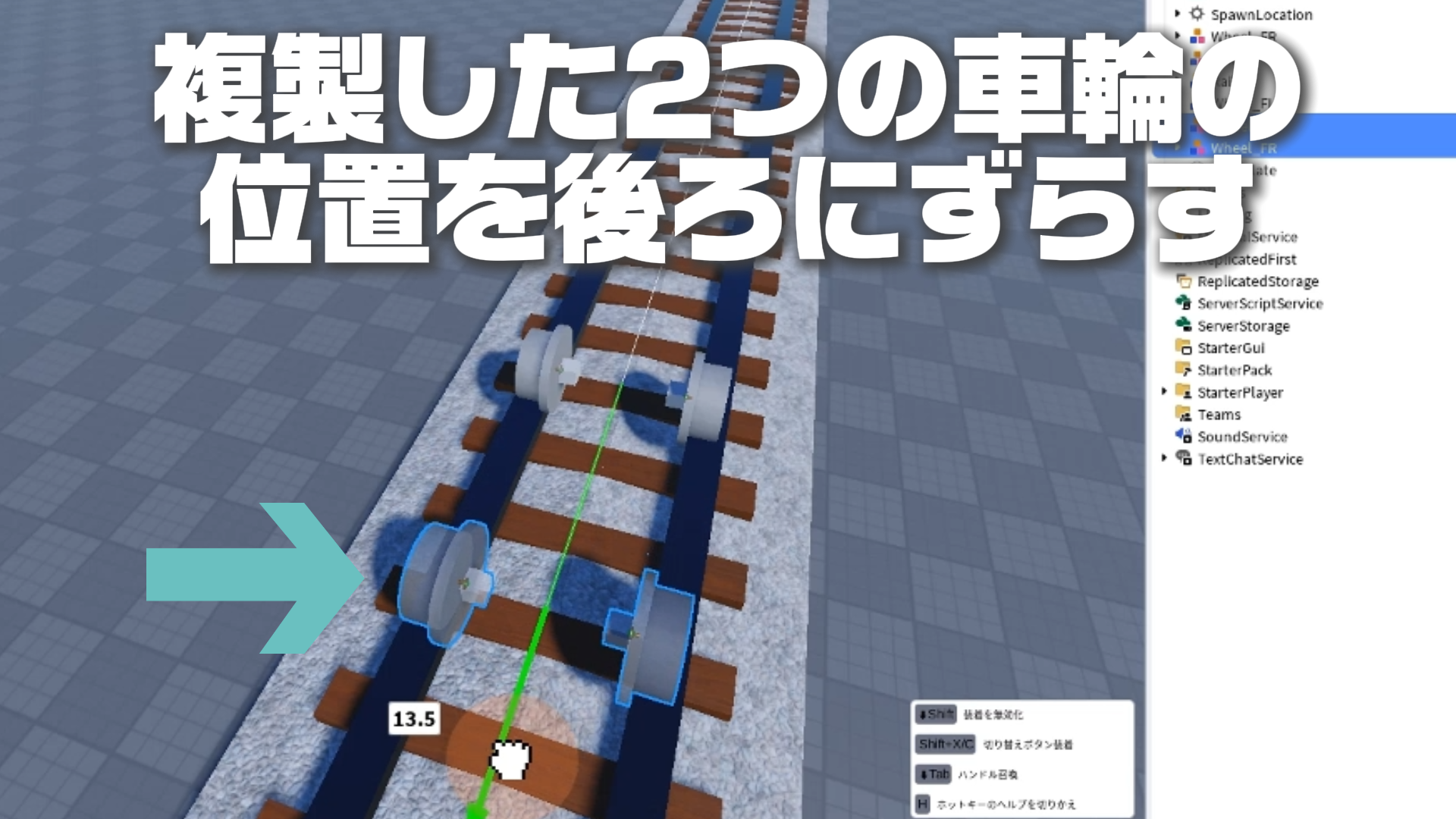 Roblox Studioでヒンジコンストレイント(HingeConstraint)を使い、車輪が回転してレールの上を前後に走るトロッコを制作します。