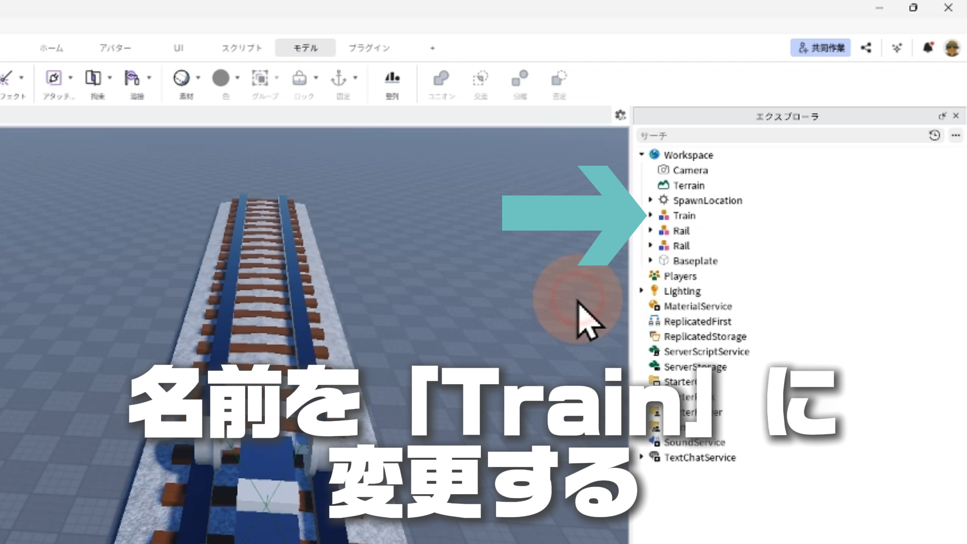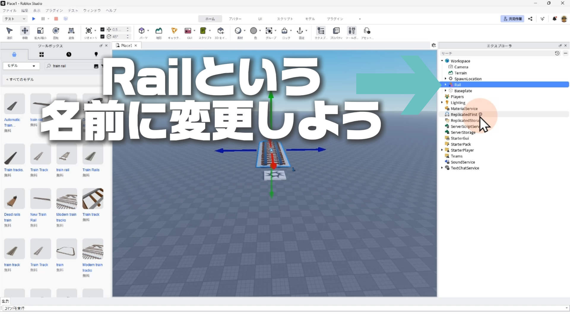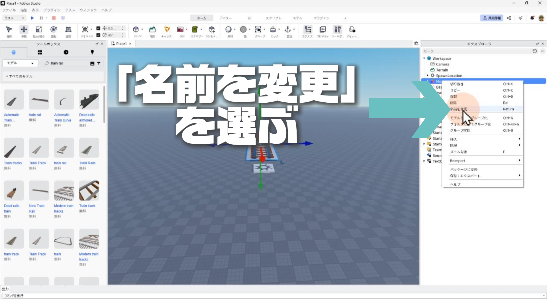 「train rail」を右クリックして表示されたメニューから「名前を変更」を選ぶ