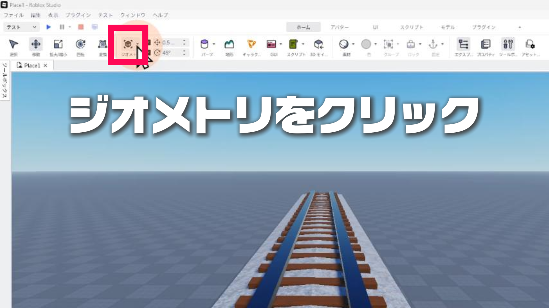 車輪を作る前の事前準備として、「ホーム」タブの「ジオメトリ」をクリック