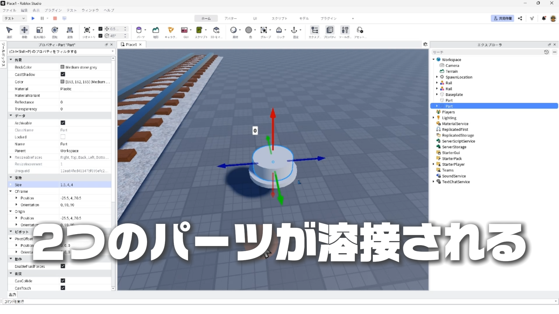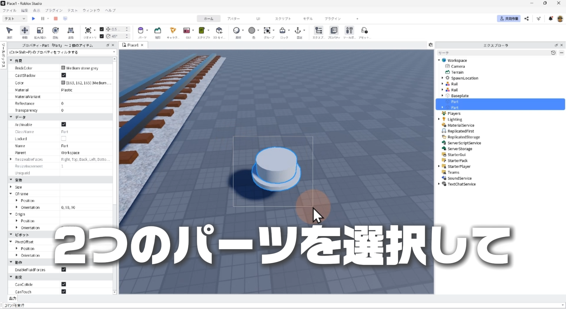 もう一度「Ctrl」キーを押しながら、2つのPart(円柱)を選択する