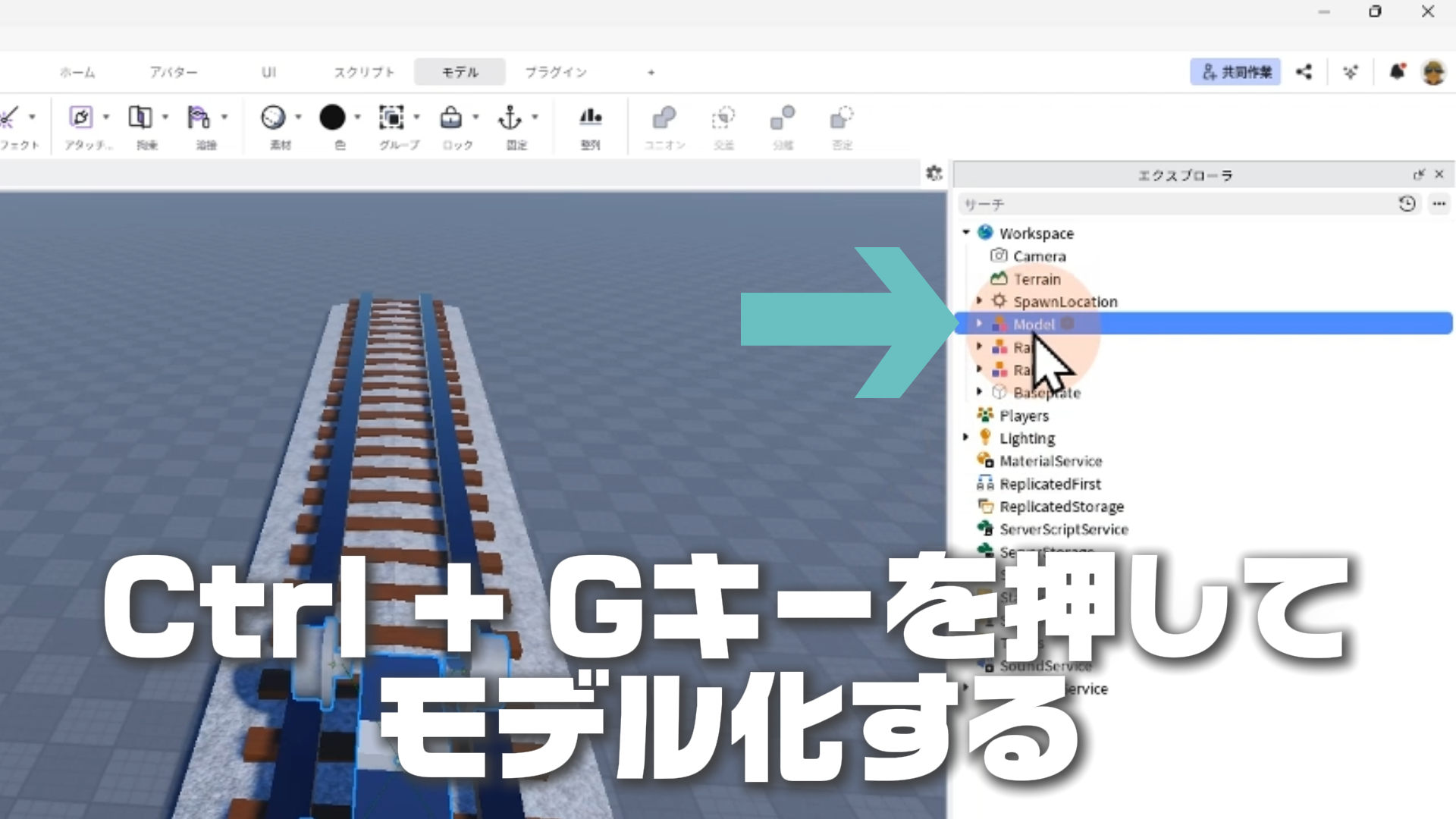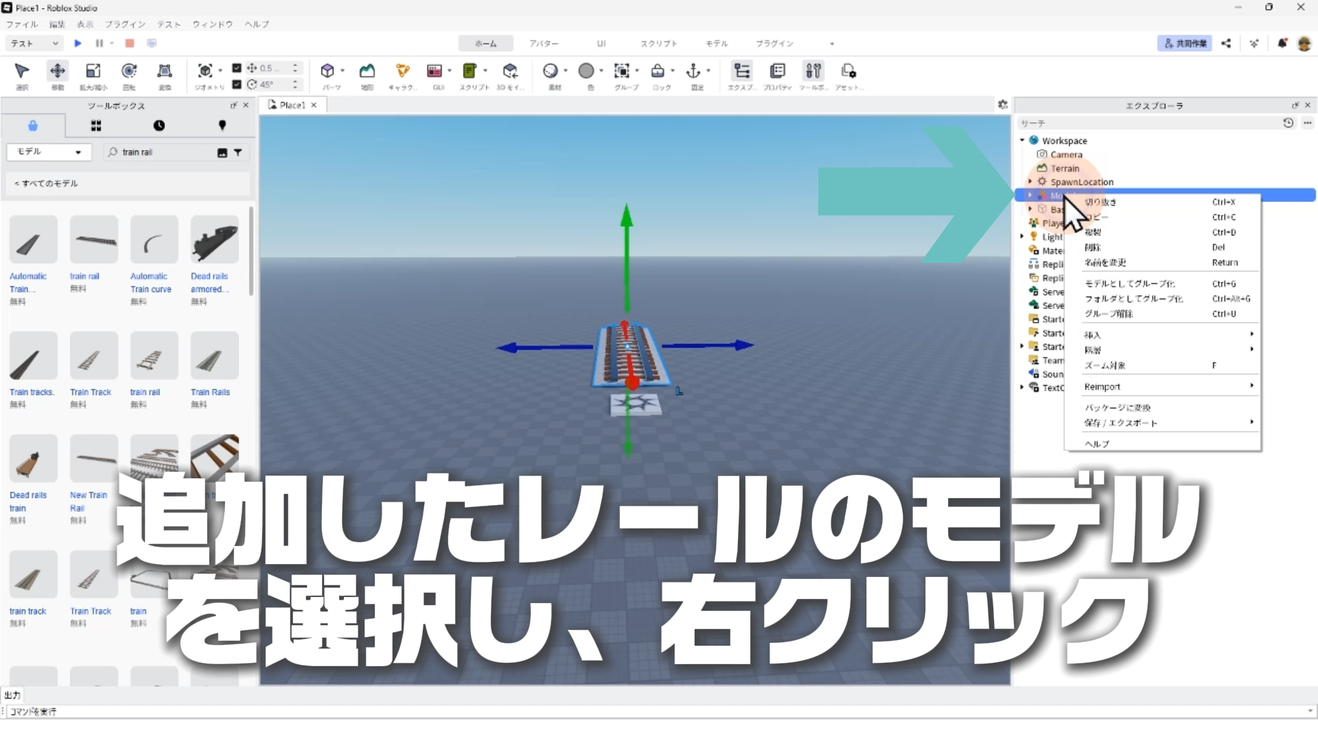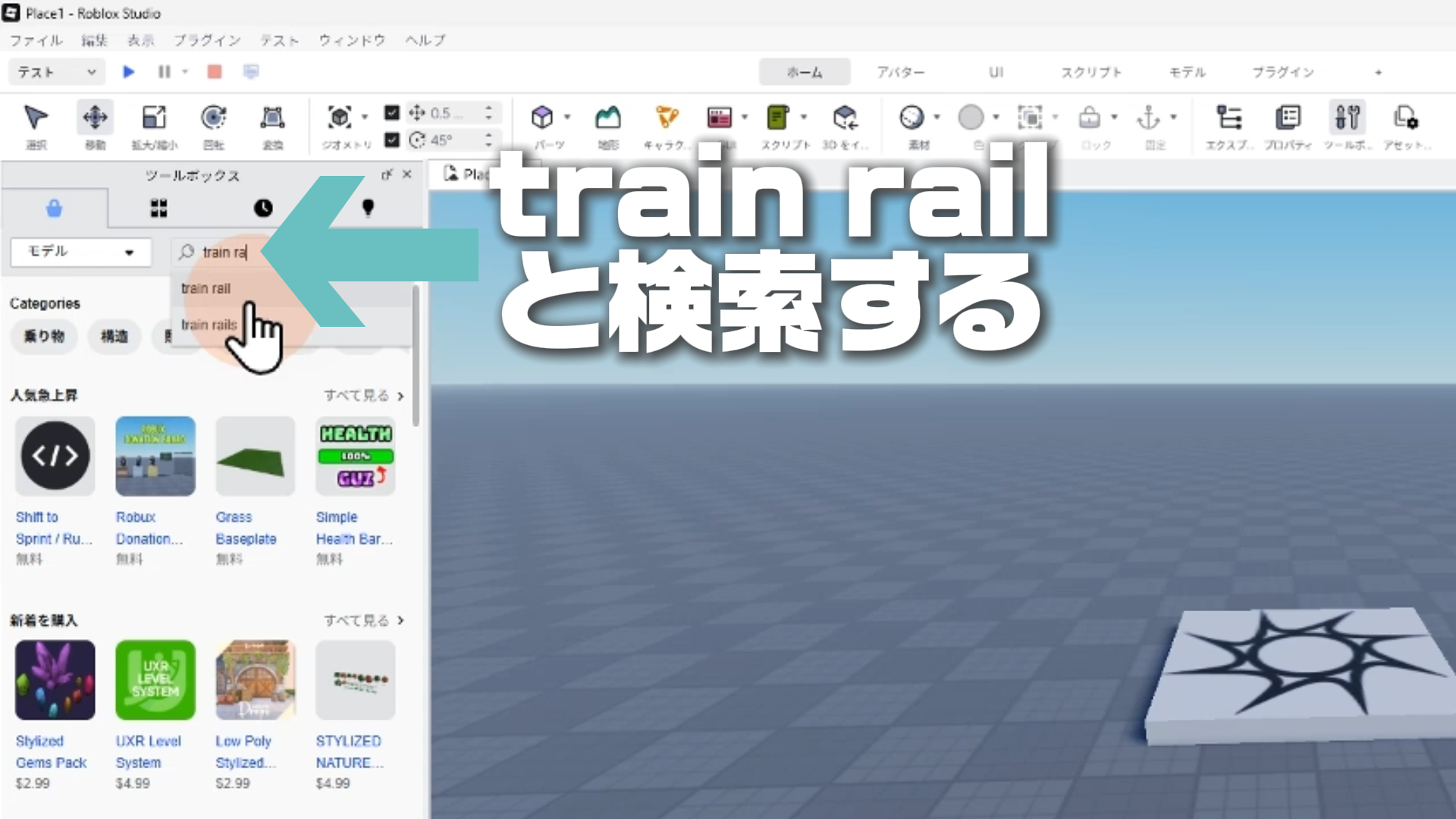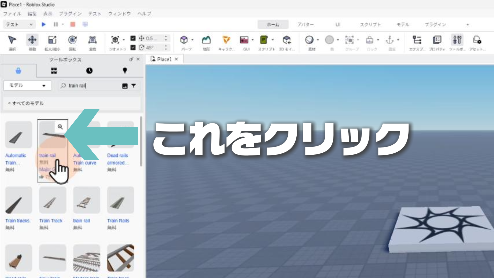 検索結果から「train rail」というモデルをクリックして、ワークスペースに追加する
