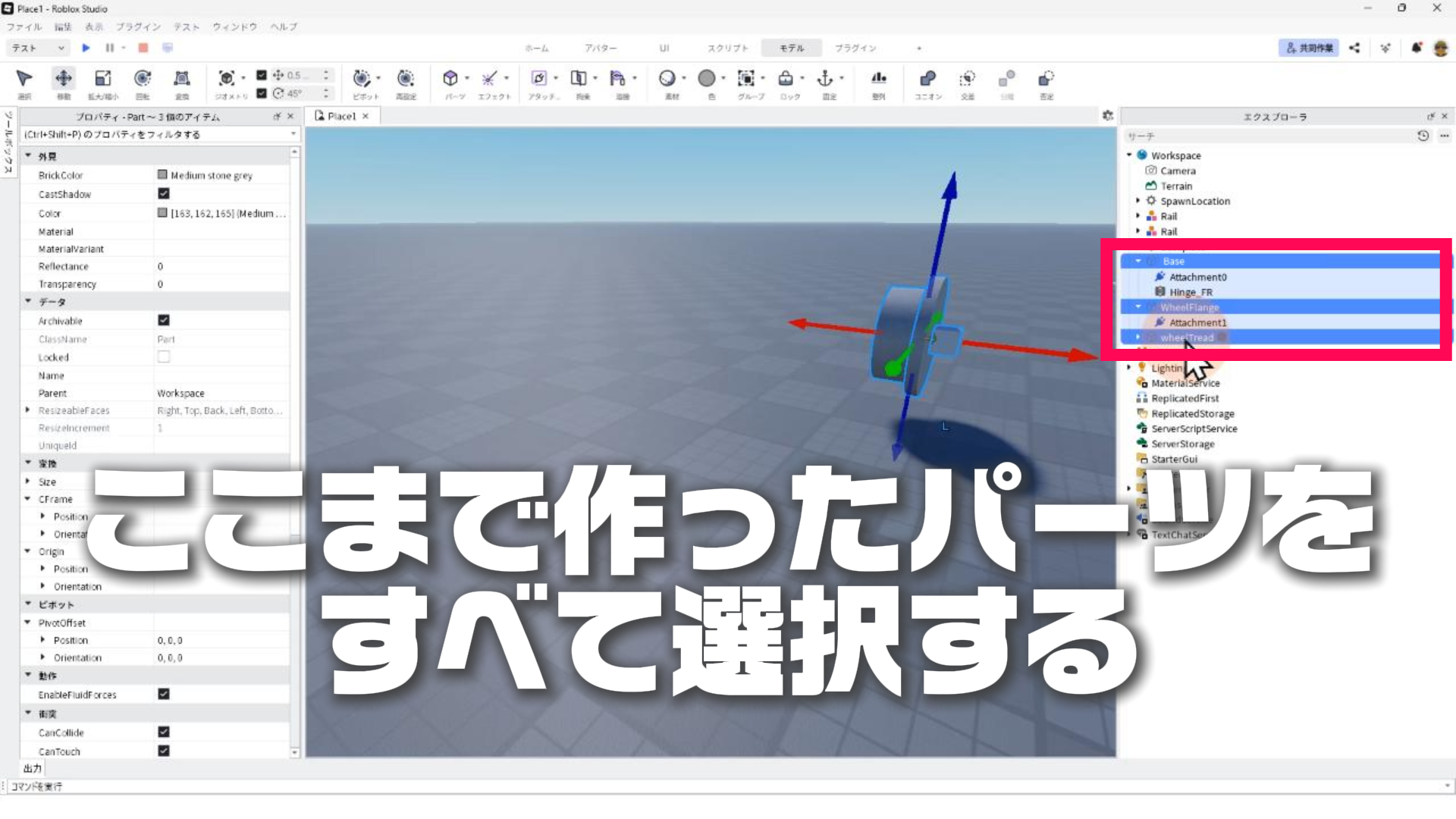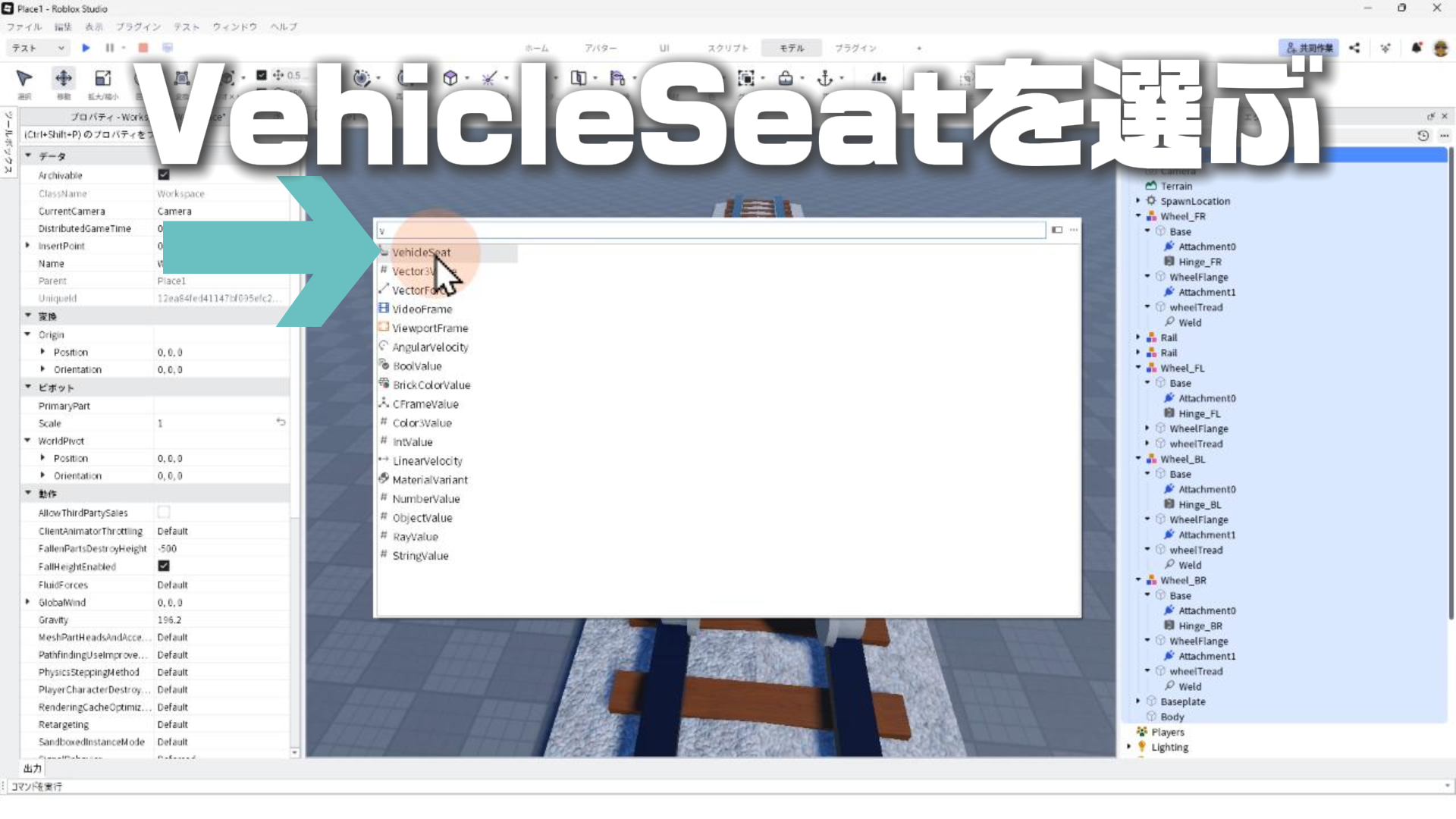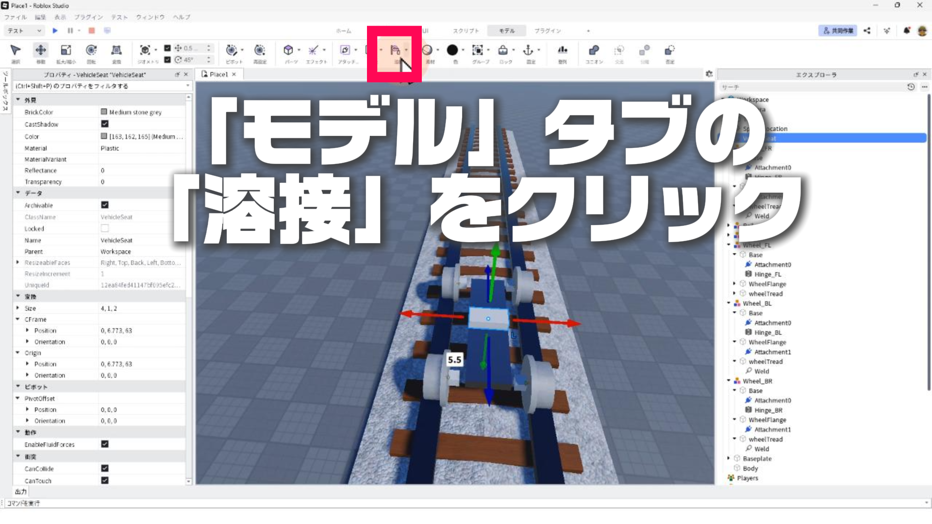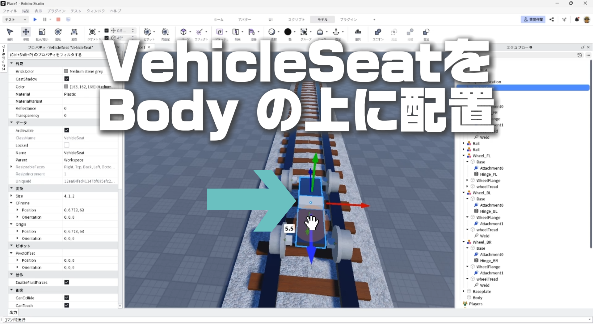 【🔰Roblox Studio入門⑤】HingeConstraint + VehicleSeatを使った、車輪が回転して動くトロッコの作り方