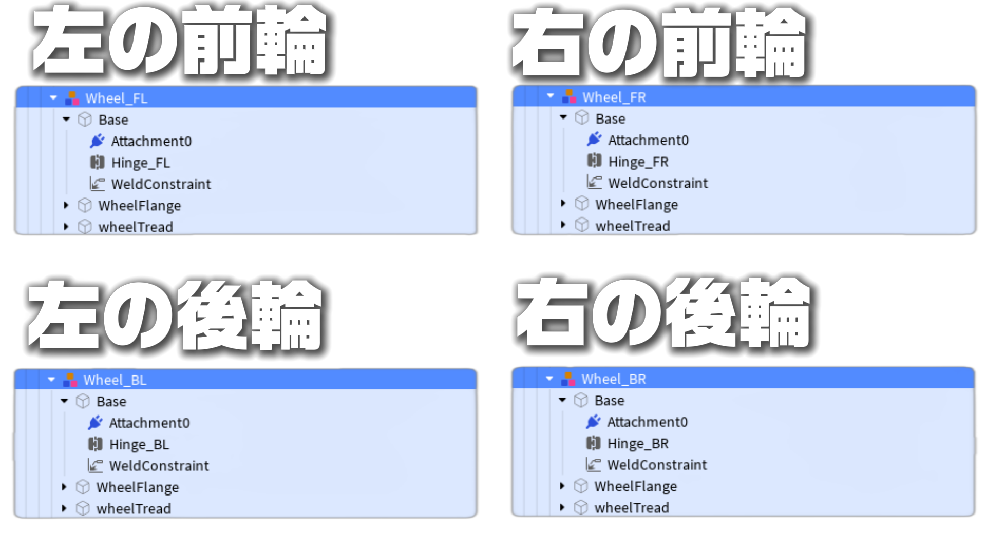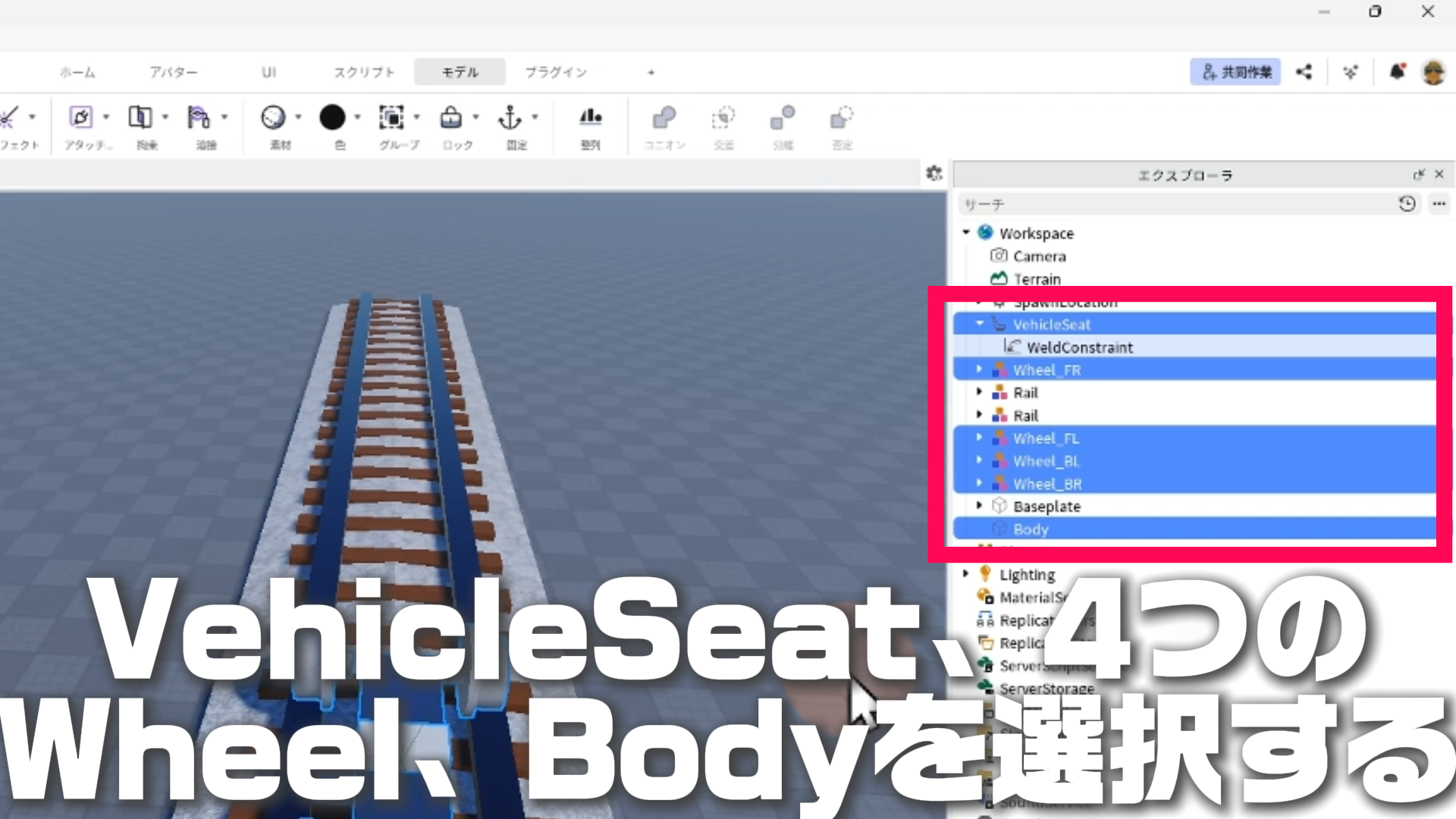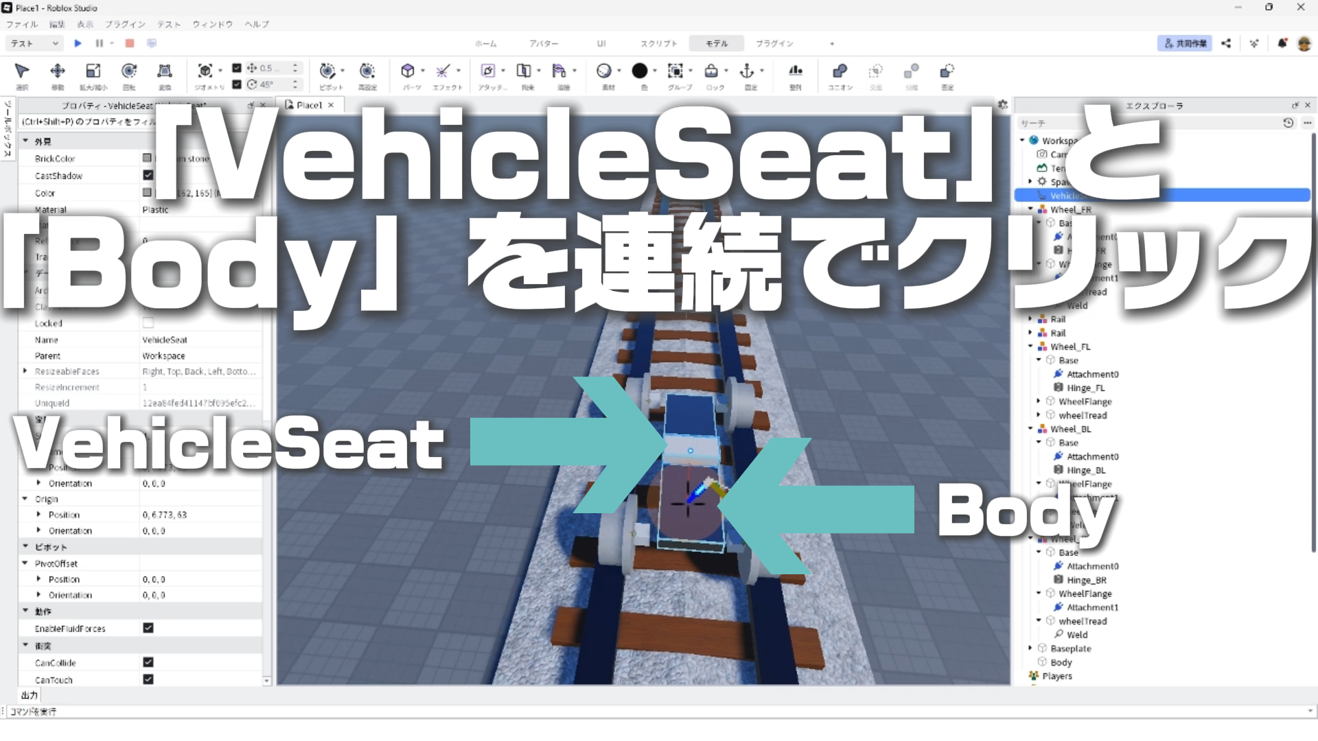 「エクスプローラ」の「VehicleSeat」4つの「Wheel」「Body」を選択する