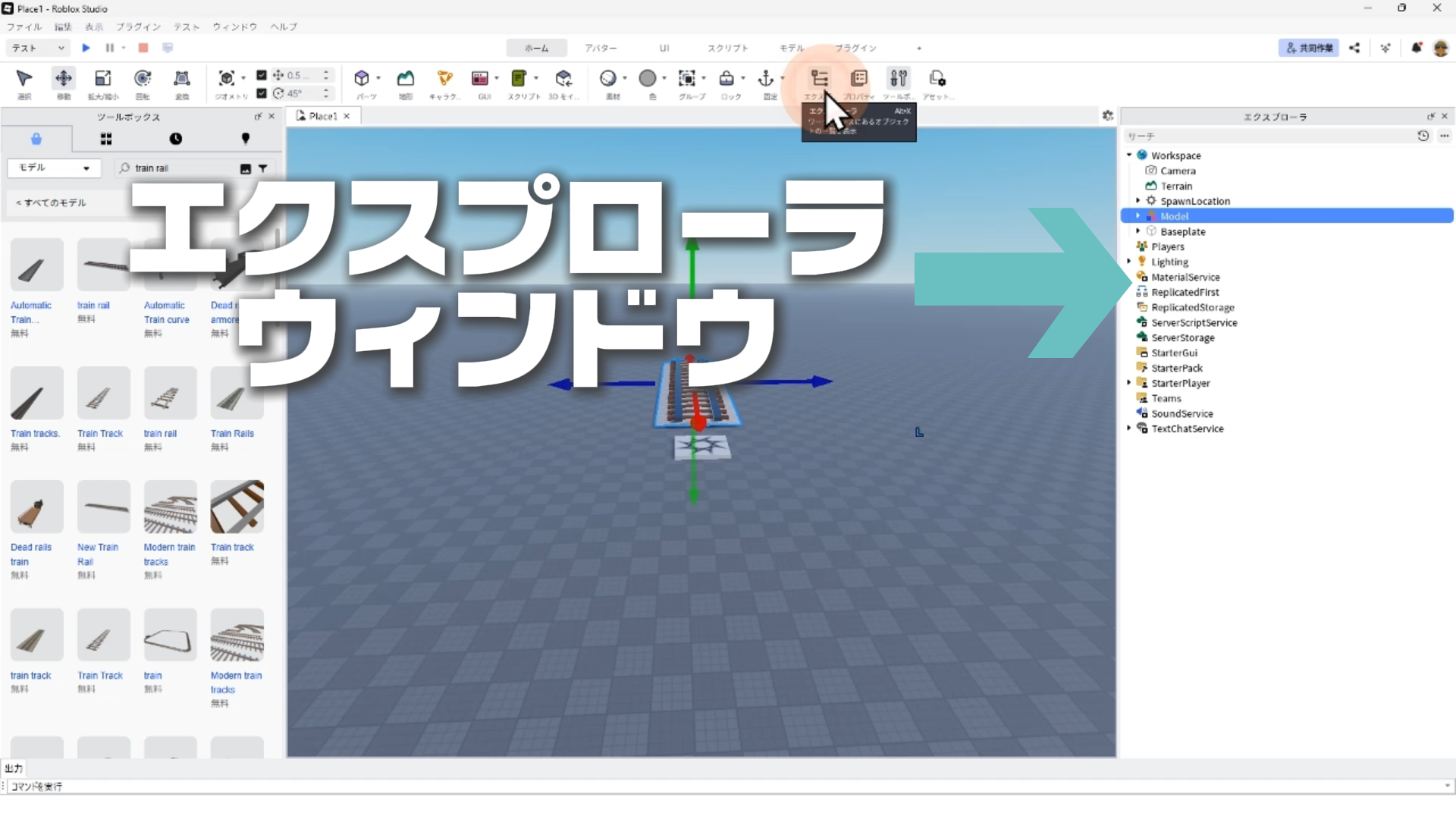 「ツールボックス」の検索ボックスで「train rail」と検索する