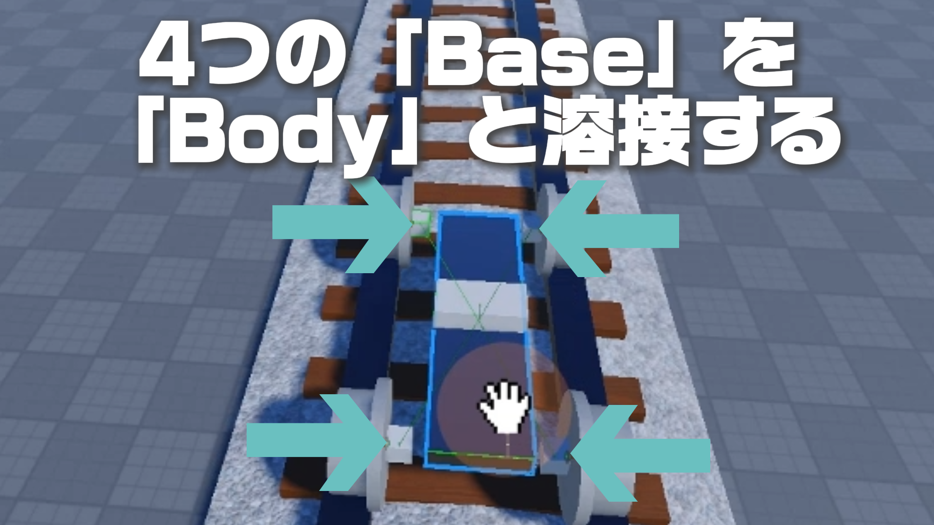 ※STEP.10の処理を4つの車輪の「Base」に行い、それぞれの「Base」を「Body」に溶接して下さい。