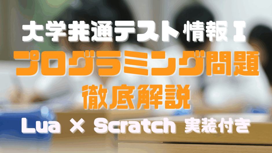 2025年1月19日に実施された大学入学共通テスト2025 情報Ⅰ 第3問(過去問)を詳しく解説し、実際にLuaとScratchでプログラミングしてみました。実際にプログラミングすることで楽しく学べて、理解も深まると思います。