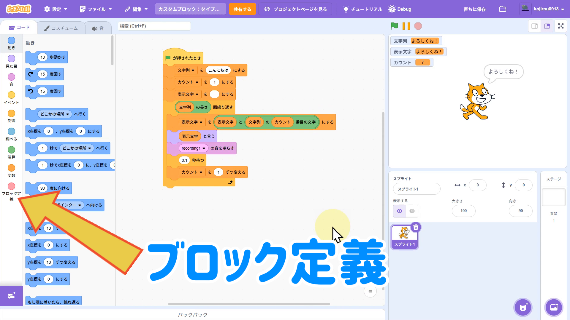 「ブロック定義」をクリックしてカスタムブロックを作ろう!