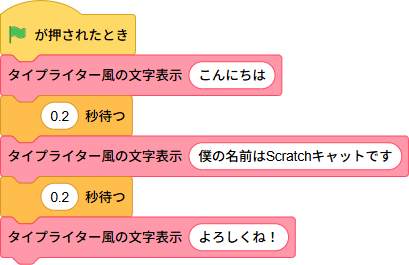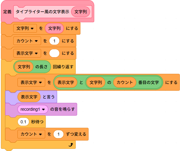 生成された定義ブロックに「タイプライター風の文字表示」スクリプトを連結する